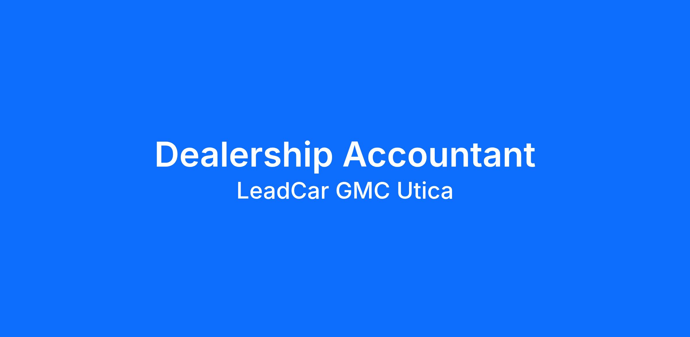 LeadCar GMC Utica is actively seeking a Dealership Accountant to join our team. We are looking for a dynamic individual who has strong communication and organizational skills. LeadCar is a newly launched group of franchised new-car dealerships representing highly-desirable import and luxury brands. We’re at the forefront of automotive retail, leading with innovation, and your unique perspectives and ideas will keep us growing. We believe our people deserve the best. We run high volume dealerships. LeadCar is committed to its communities and customers offering the best in class team members, state-of-the-art facilities and diversification of product lines to provide the best service possible. With an exceptional legacy passed on from its predecessors spanning all the way back to 1933, the LeadCar GMC Utica team brings a proven track record combined with an unmatched reputation for quality in the Utica, NY, and greater central New York market areas.