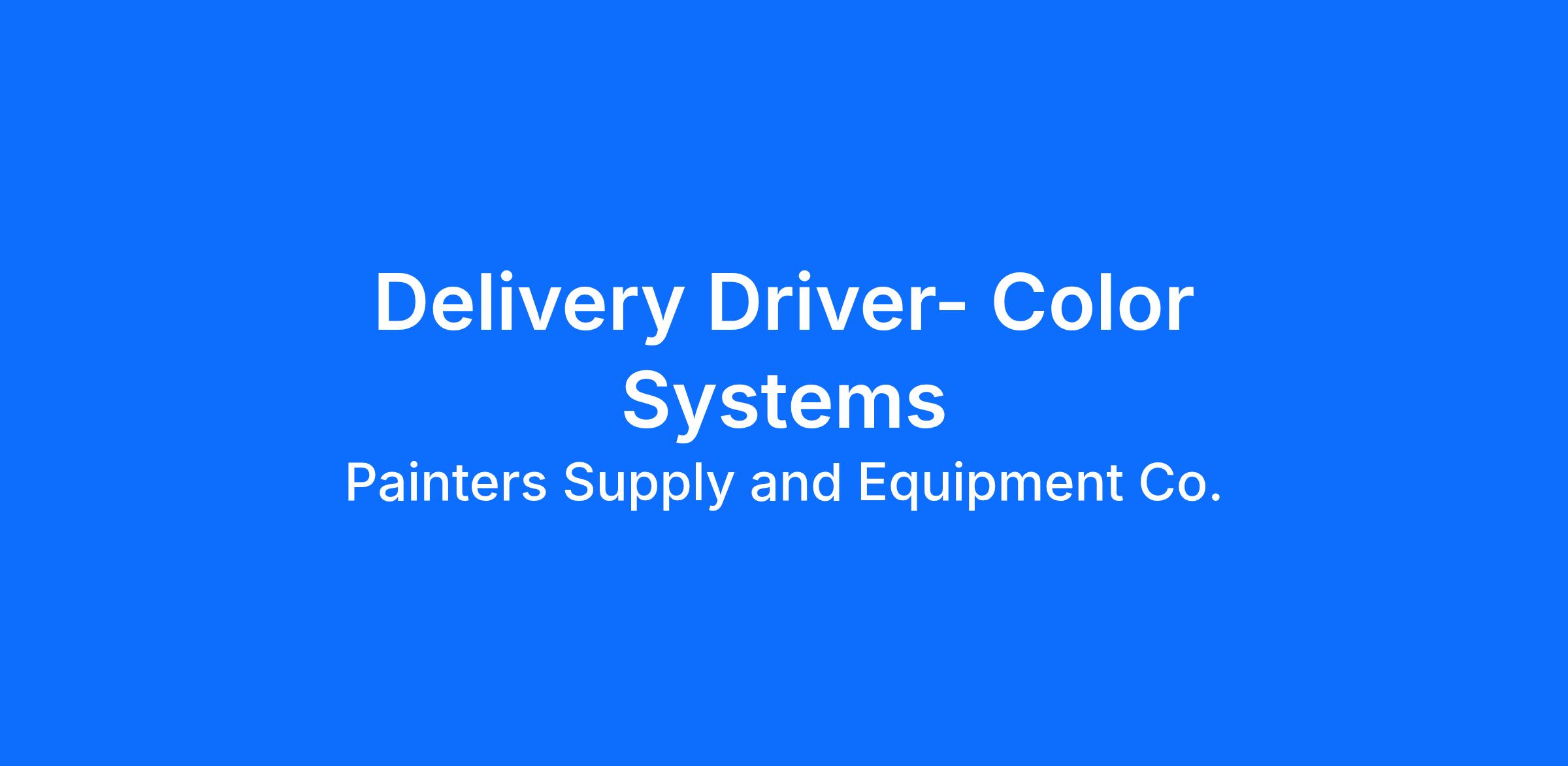 As a Delivery Driver , this position will deliver paint, and related products, to LOCAL Color Systems customers. In addition, the candidate will assist with various tasks at the store when not making deliveries.