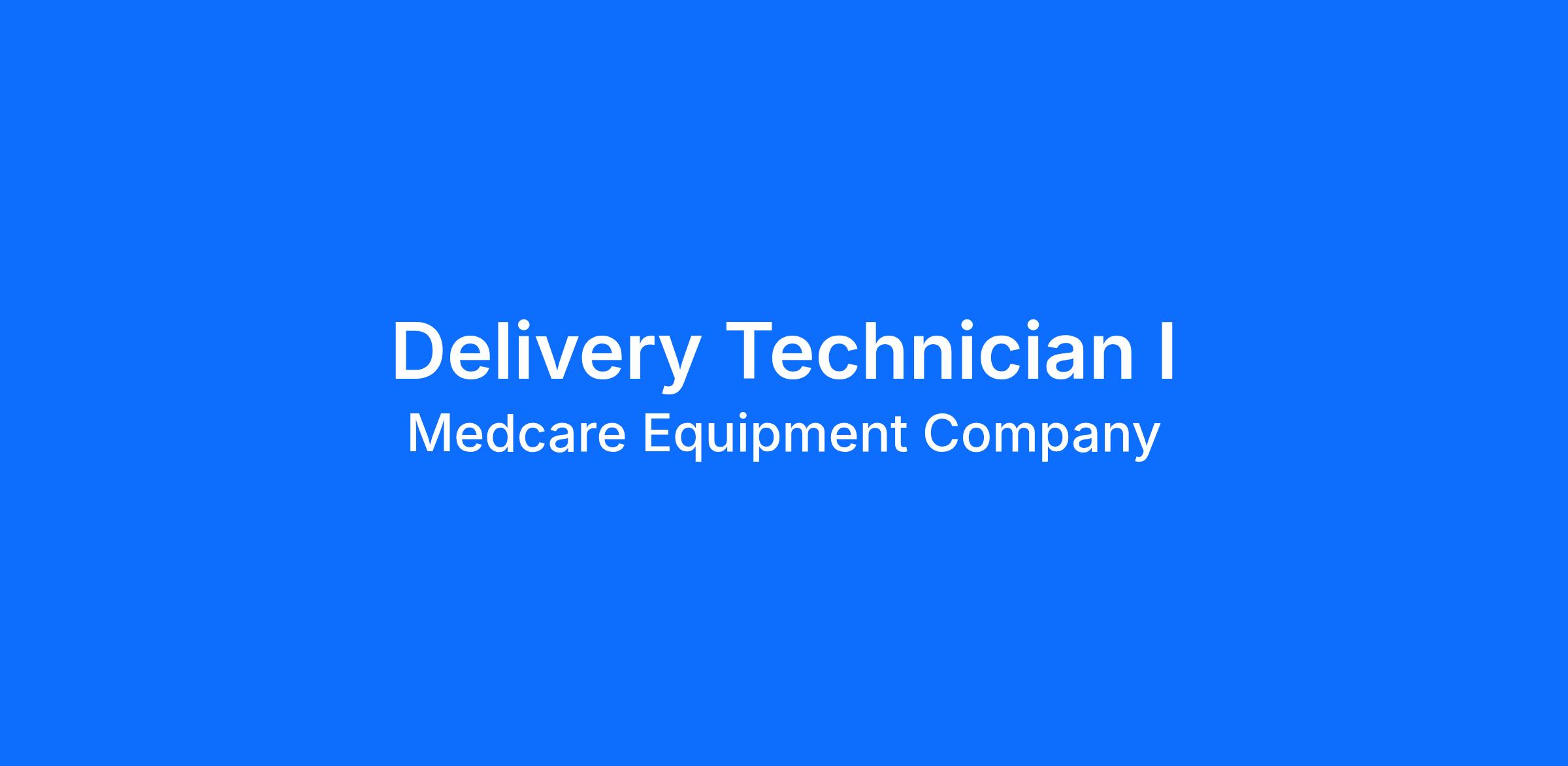 The Delivery Technician I effectively interacts with patients/clients, their families, caregivers, and members of the healthcare/HME team in providing professional home medical equipment products and services. Provides delivery set-up, initial instruction, and pick-up of HME.