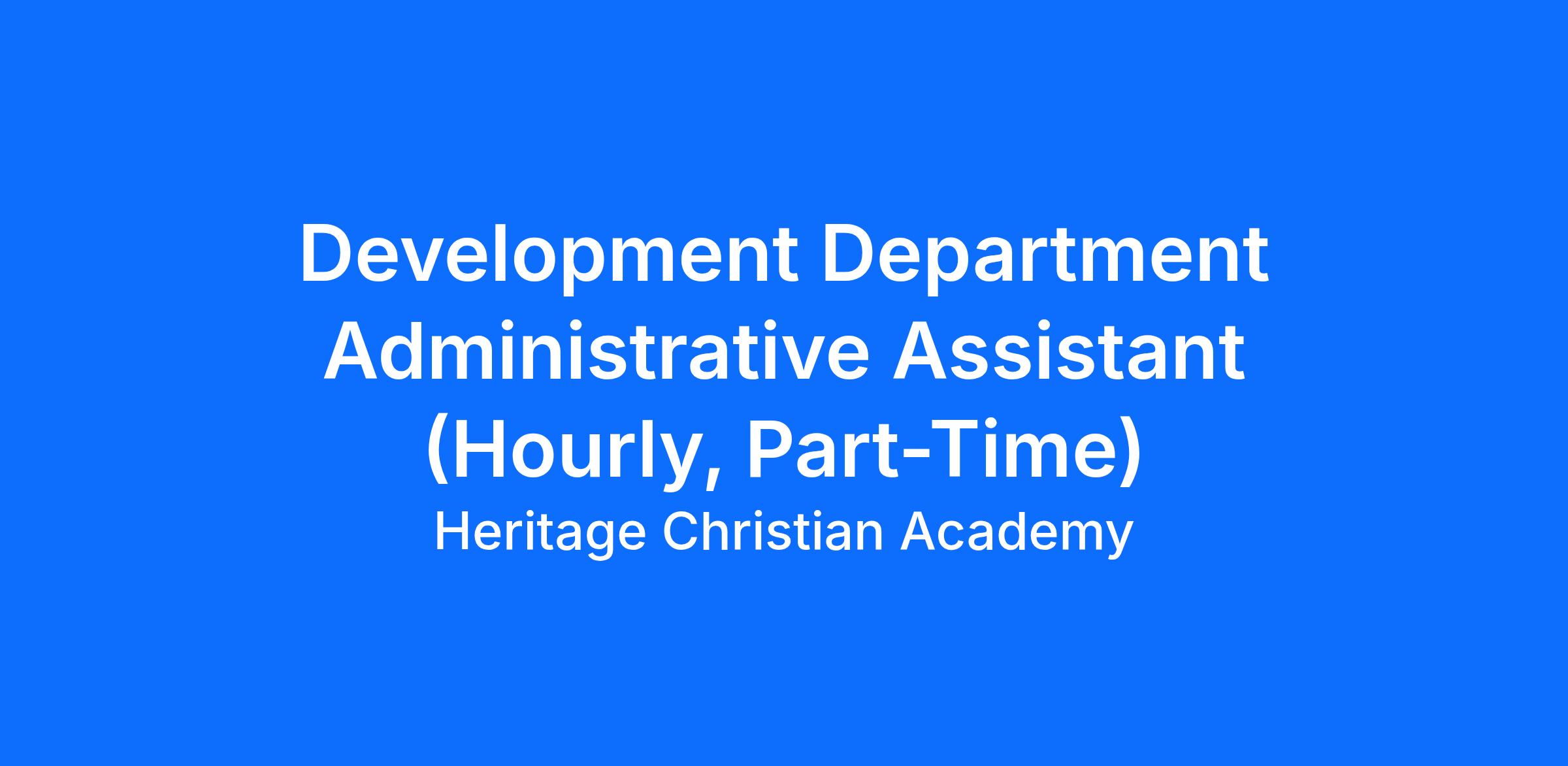 Heritage Christian Academy (HCA) is seeking a detail-oriented and collaborative Administrative Assistant to provide hourly, part-time support for the school’s fundraising and development activities. This role supports the execution of campaigns, events, reporting, and coordination work that enables effective donor engagement and fundraising outcomes. All work is completed under the direction of the Development Director. This position does not supervise staff or lead programs.