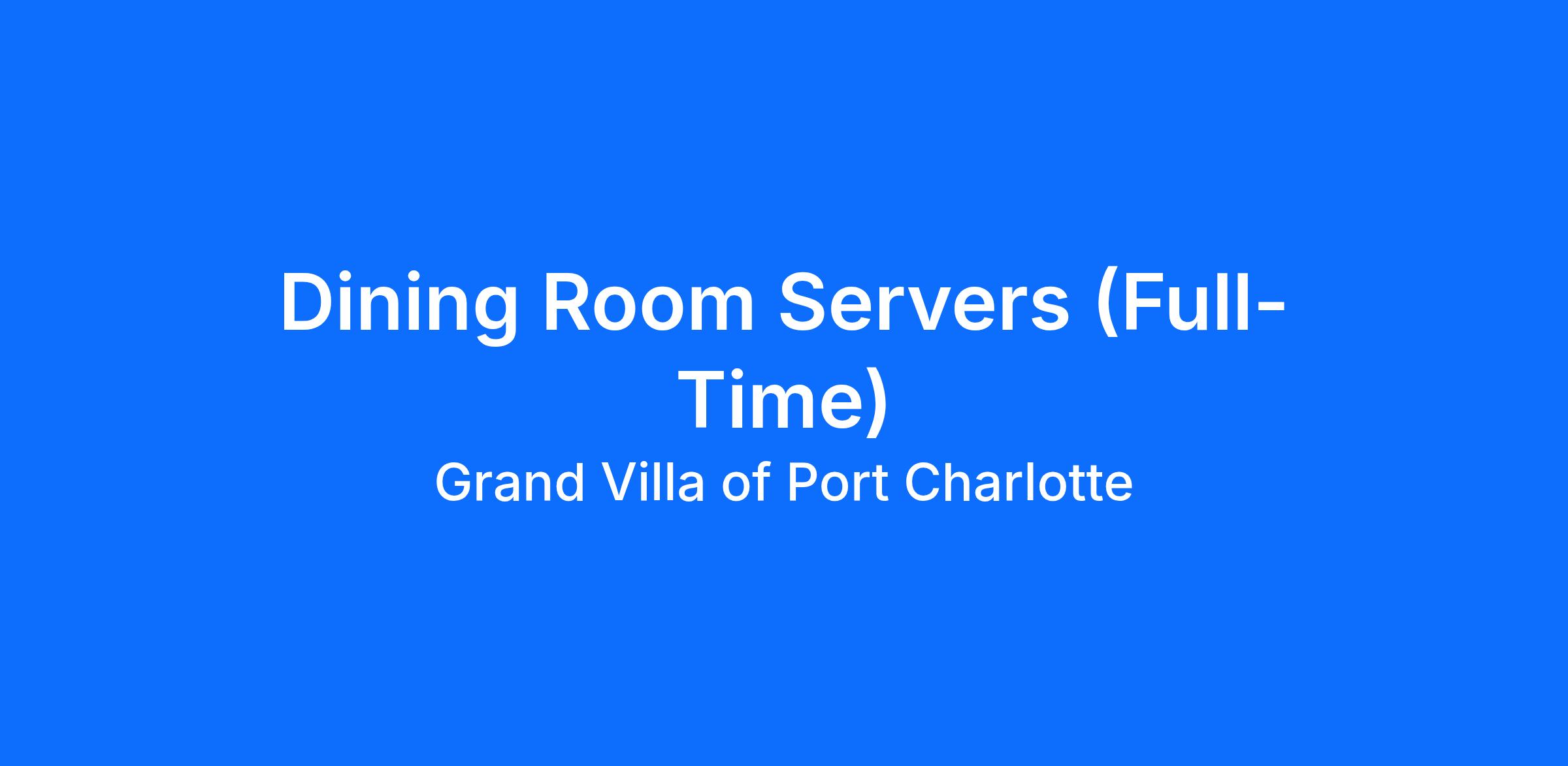 We are excited to announce that we are expanding our team is seeking full-time Dining Room Servers to join our dedicated staff in our senior community. This is a wonderful opportunity to make a positive impact in the lives of our residents while providing exceptional dining experiences.