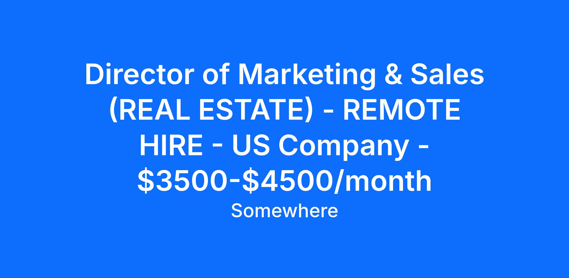 Director of Marketing & Sales (REAL ESTATE) - REMOTE HIRE - US Company - $3500-$4500/month
