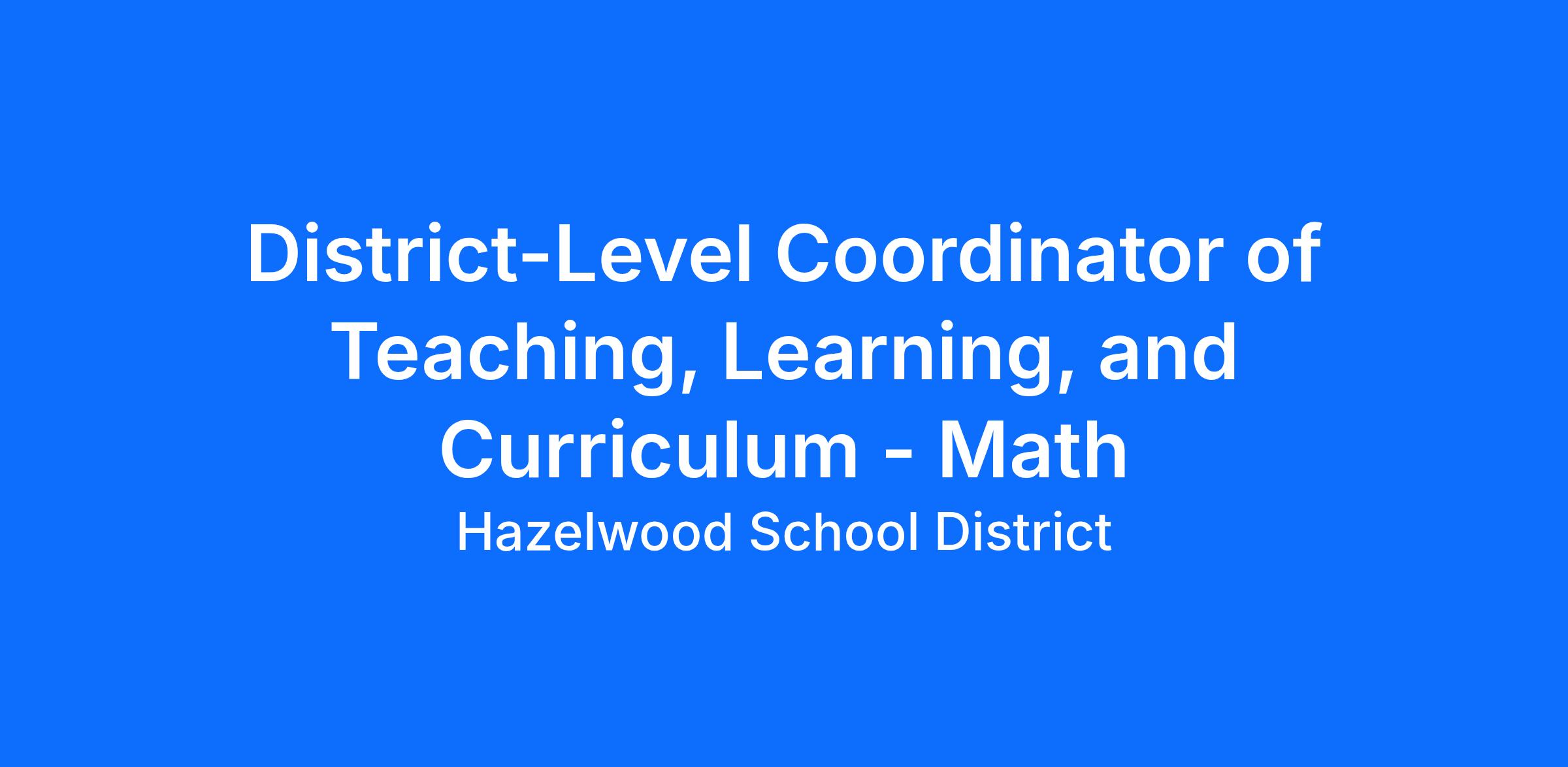 The purpose of the position of coordinator of teaching, learning, and curriculum is to support the District’s teaching and administrative staff with implementing effective instructional practices and providing instructional leadership to improve academics for Hazelwood School District students. As a part of the Instructional Services Division, the coordinator facilitates best practices in teaching and learning and provides leadership to support teachers in increasing both their success with classroom instruction as well as strengthening their professional competence, confidence, and success.