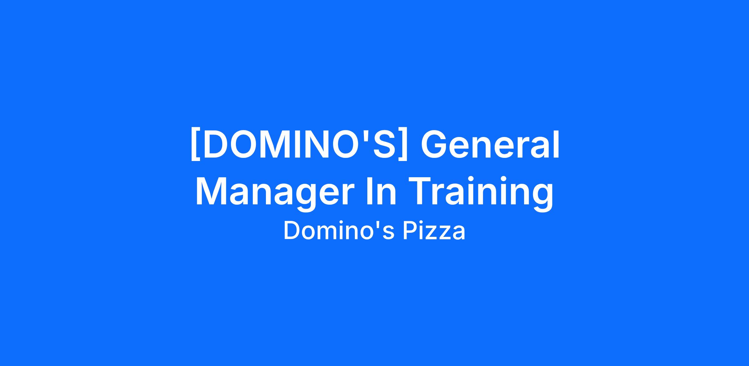 Domino's Pizza is hiring immediately for a General Manager to join their team!