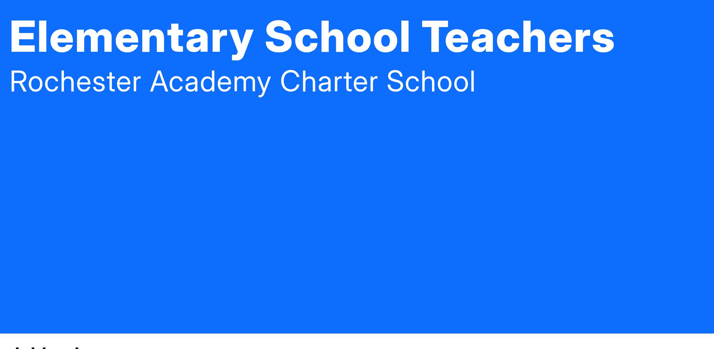 Rochester Academy Charter School (RACS) is currently seeking qualified candidates for the position of Elementary School Teachers for the 24-25 school year. This is a full-time contract position.