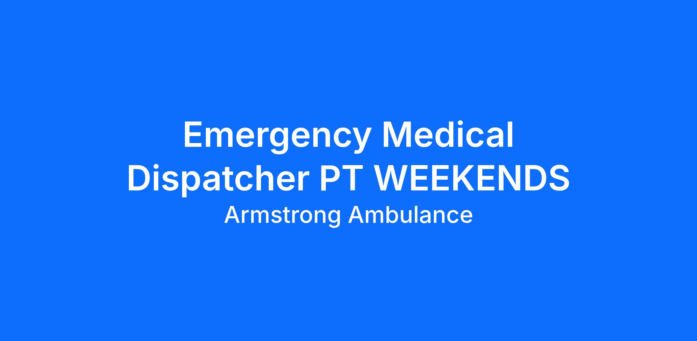Ready to launch or continue your career in Emergency Medical Dispatch / Communications? Armstrong Ambulance Service looking for an Emergency Medical Dispatcher to join our Communications team!