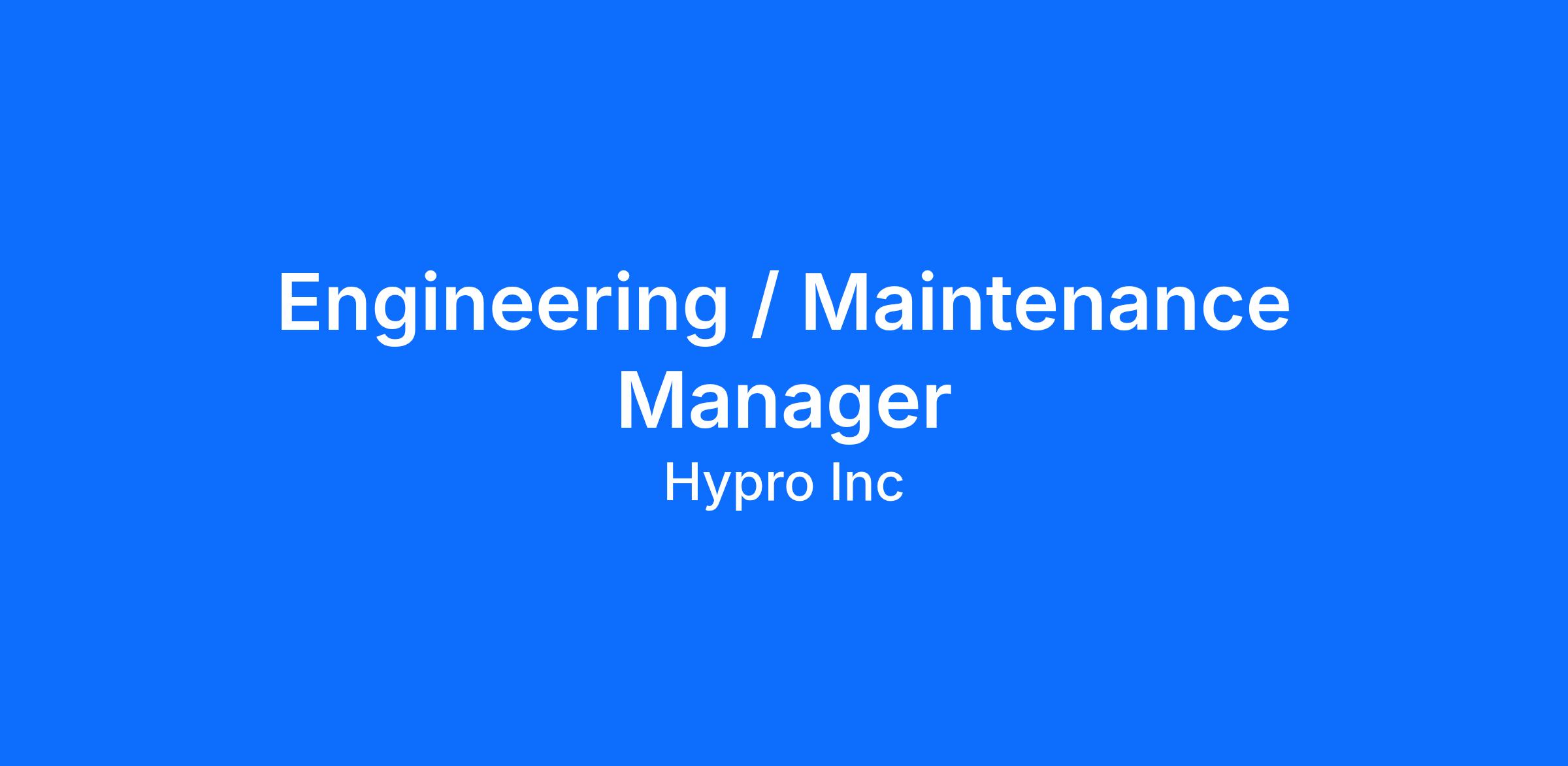 We are currently seeking an experienced, hands-on Engineering and Maintenance Manager to oversee and manage these department(s).