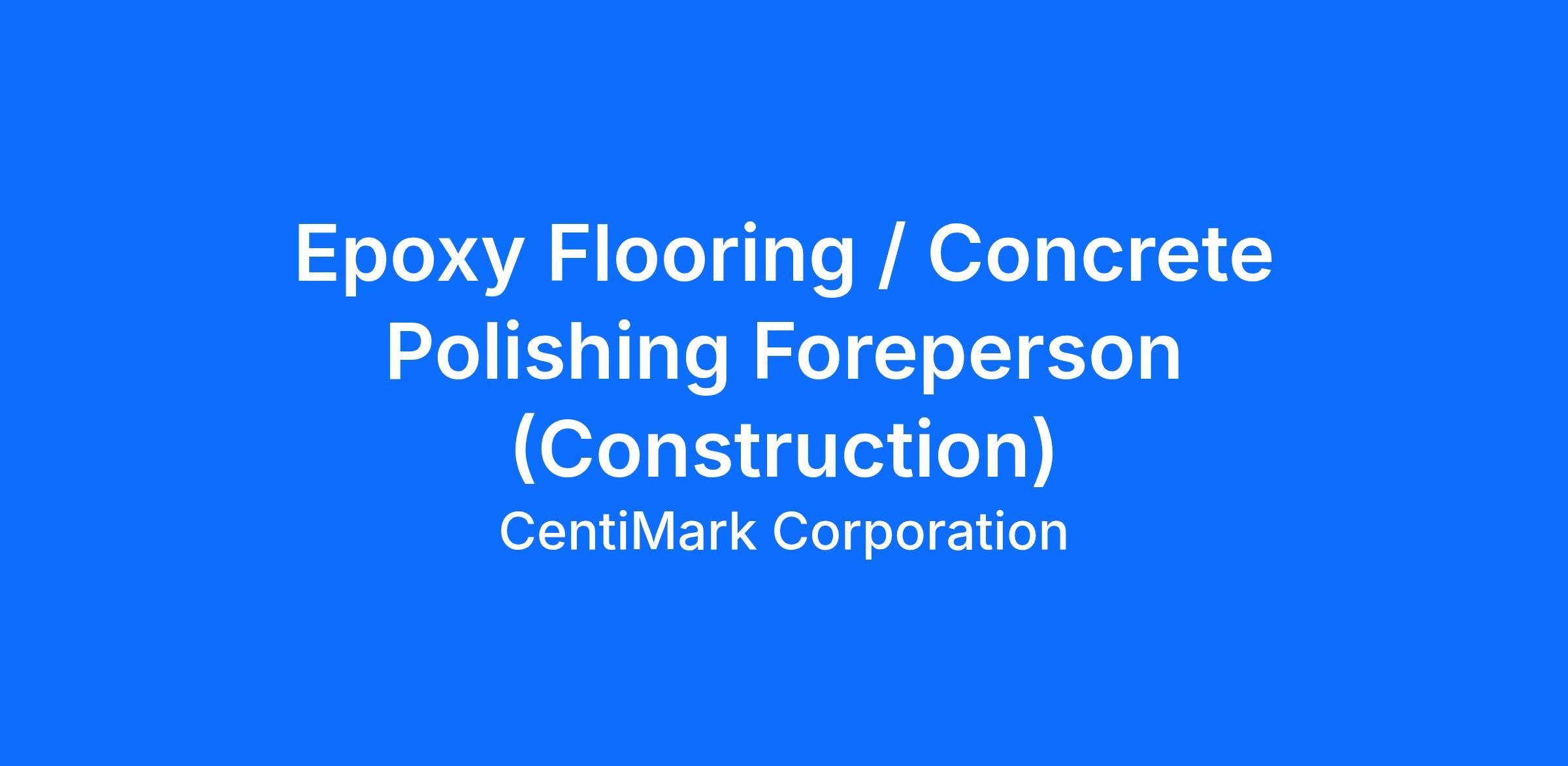 The successful candidate for our Epoxy Flooring / Foreperson opportunities will demonstrate initiative, be a self-starter with a high level of professional integrity, and have a strong work ethic and competitive drive.