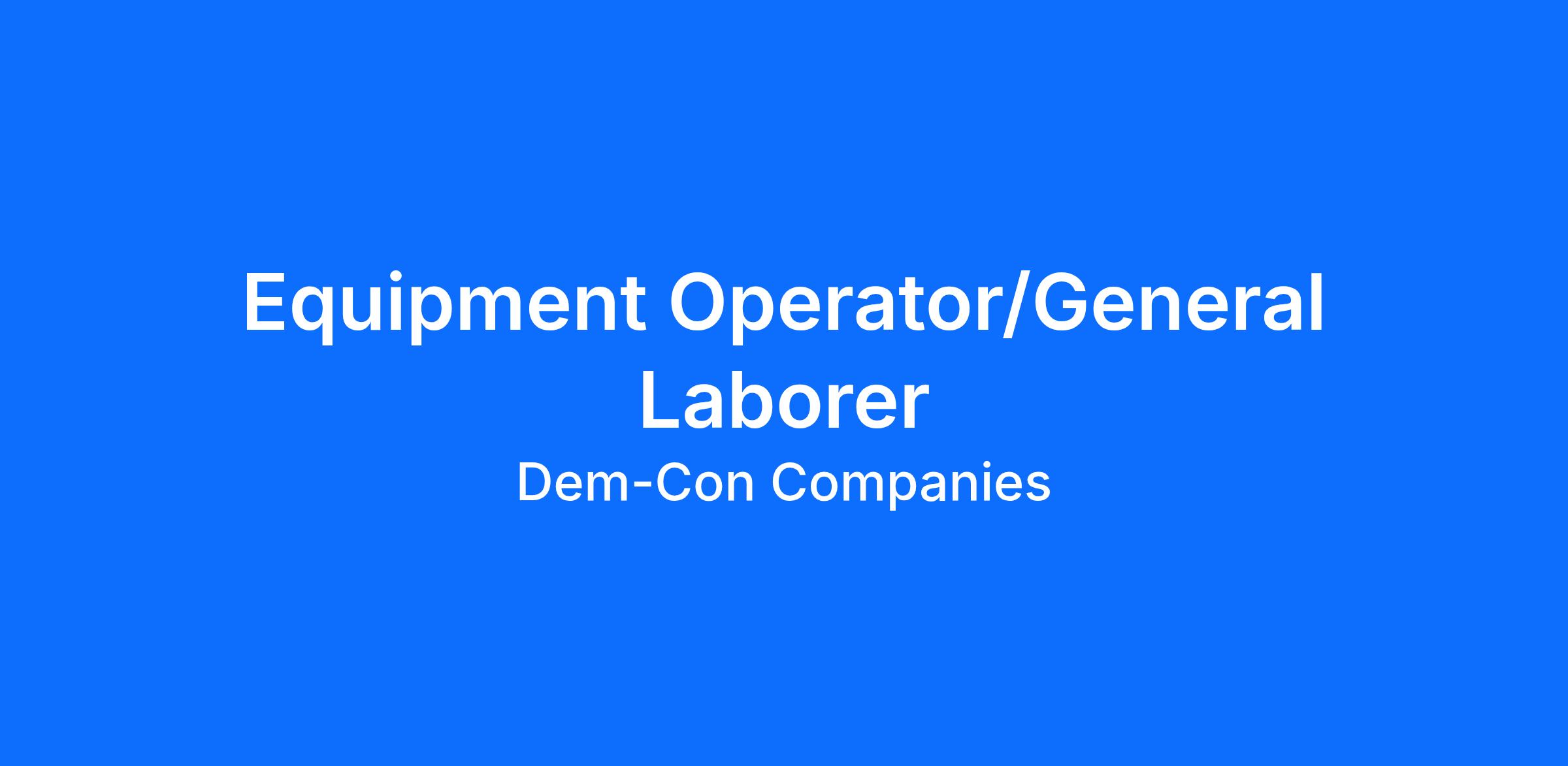 Dem-Con Companies, LLC is an Equal Opportunity Employer. We will provide equal employment opportunities to all employees and applicants for employment in accordance with all applicable laws, directives, and regulations of federal, state, and local governing bodies or agencies.