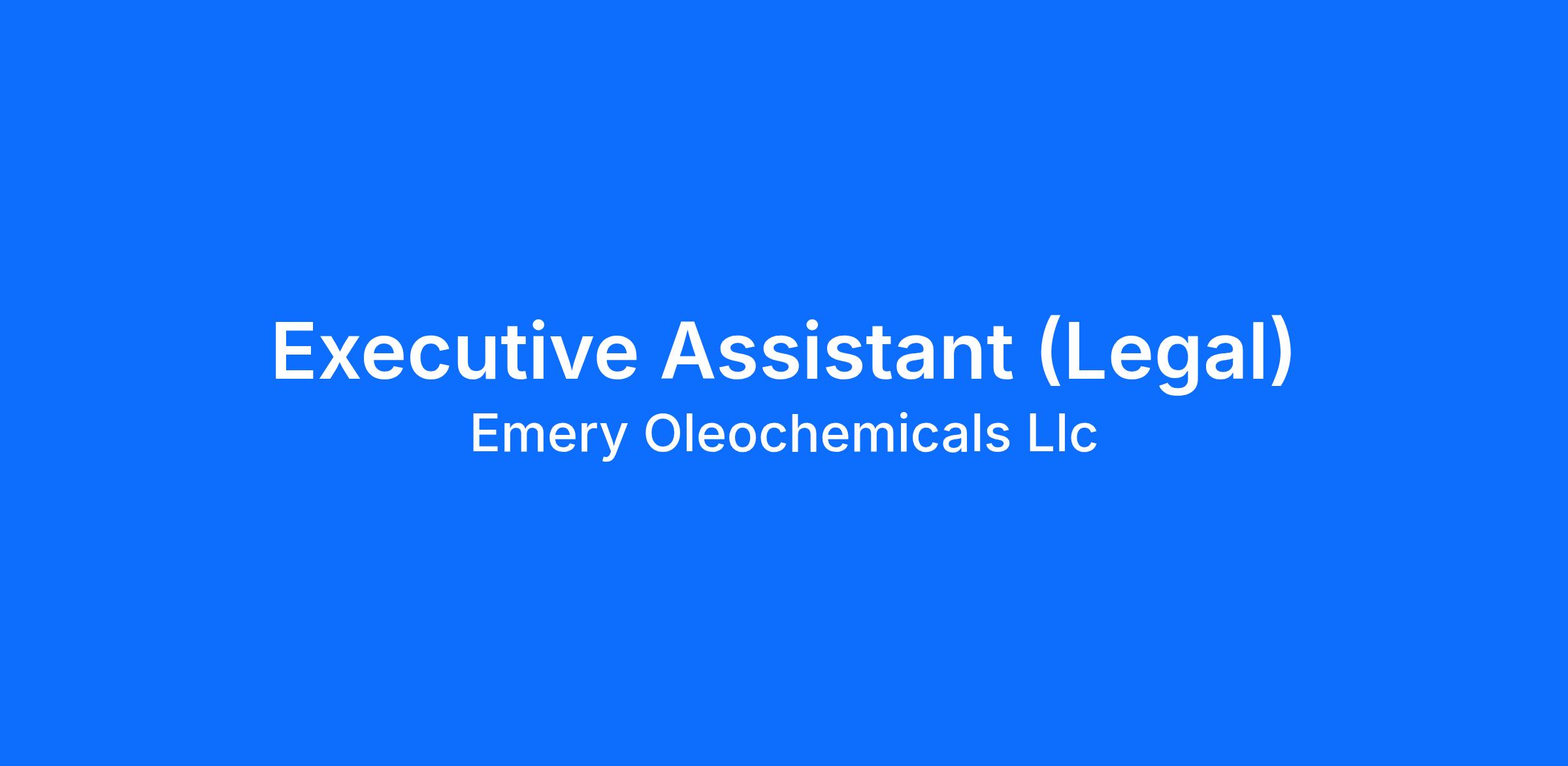 The Legal Executive Assistant provides high-level executive, legal, and operational support to the General Counsel and Executive team at Emery Oleochemicals. This role operates at the intersection of legal administration, executive coordination, and corporate office management within a fast-paced chemical manufacturing environment.