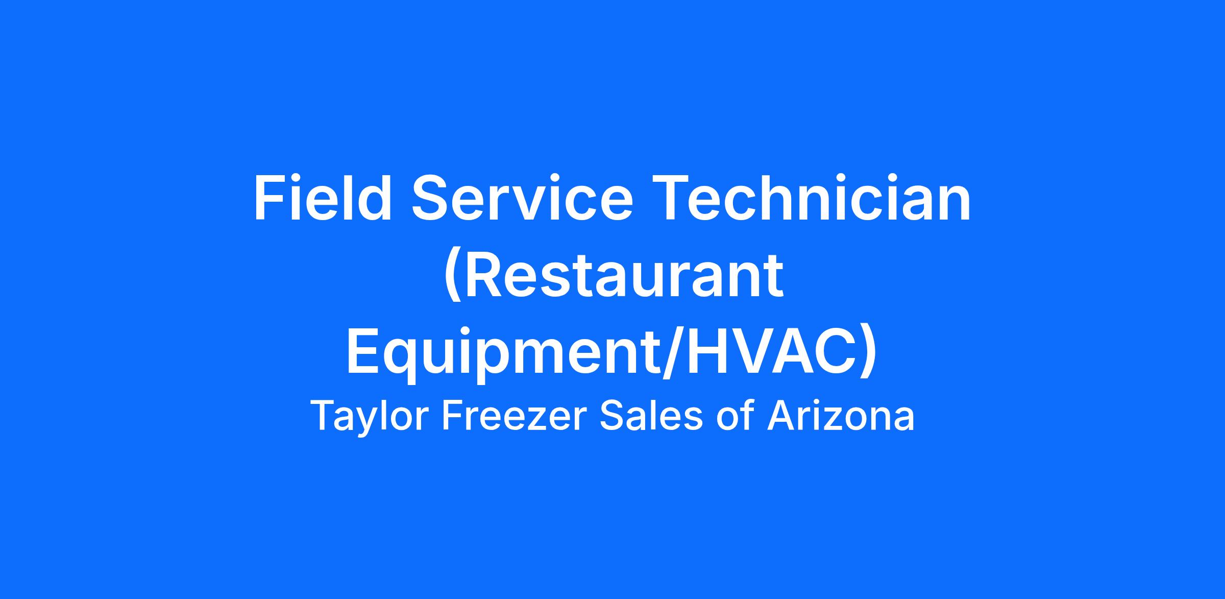 Taylor Freezer Sales of Arizona is hiring a Field & Shop Service Technician in Phoenix, AZ to install, maintain, and repair commercial foodservice equipment including soft serve machines, ice systems, and grills.