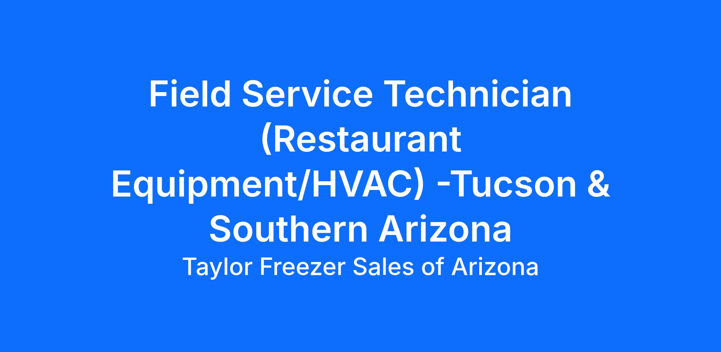 Taylor Freezer Sales of Arizona is hiring a Field Technician in Tucson, AZ to install, maintain, and repair commercial foodservice equipment including soft serve machines, ice systems, and grills.