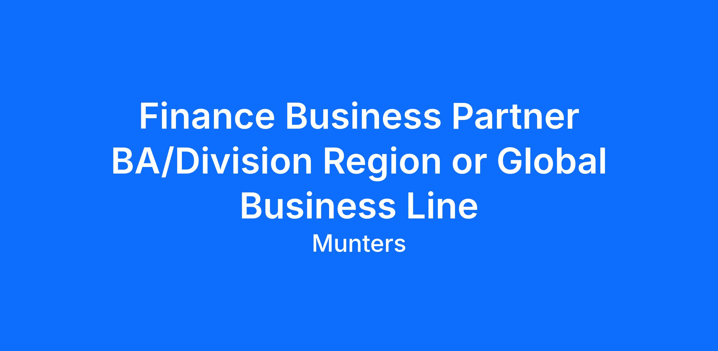Title: Finance Business Partner BA/Division Region or Global Business Line