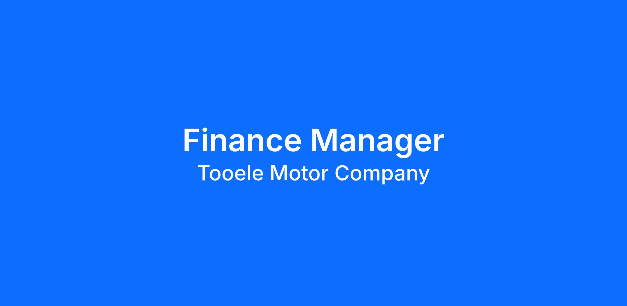 Tooele Motor Company is looking for an experienced Finance Manager to join our team!