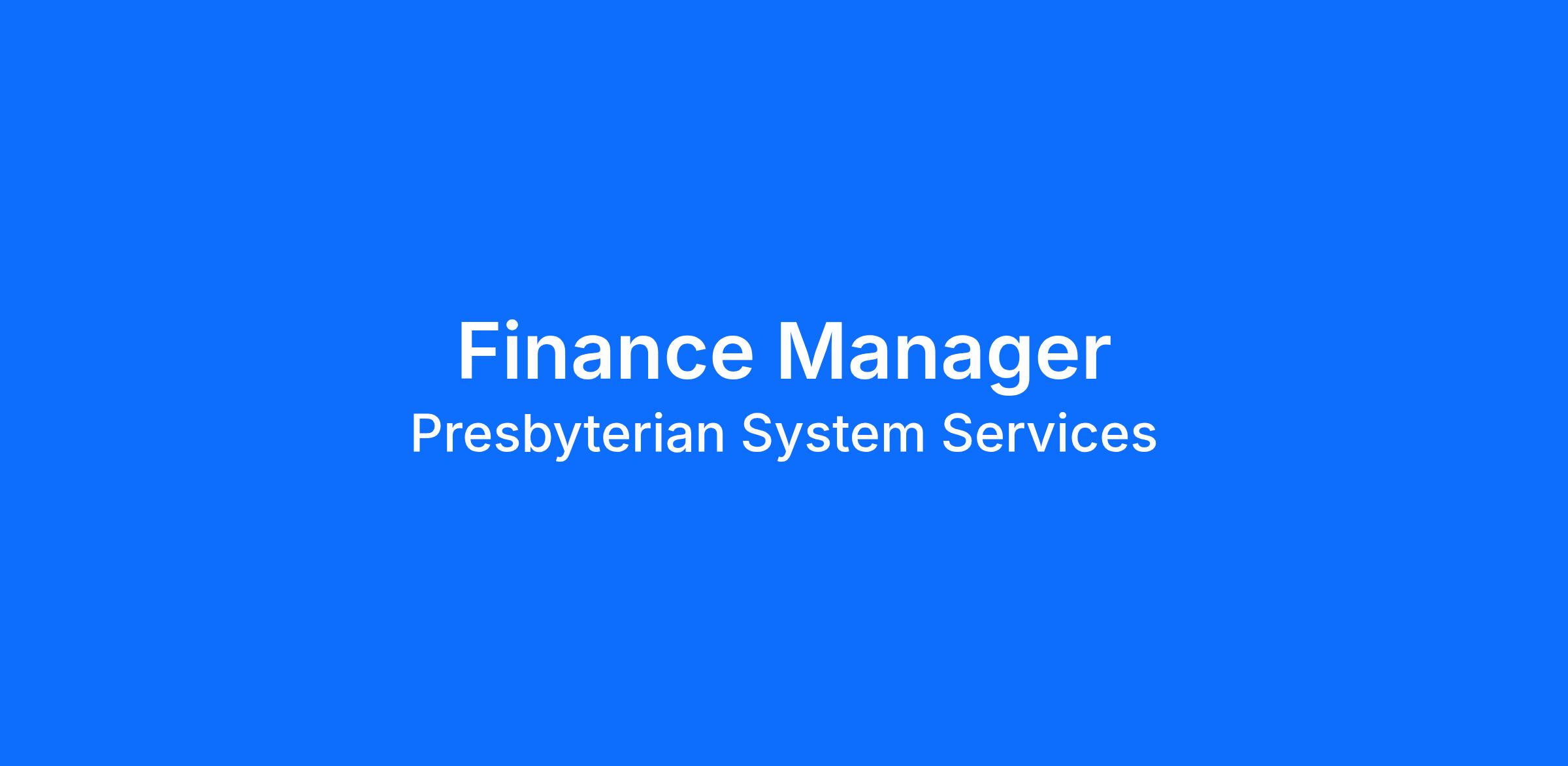 Build your Career. Make a Difference. Presbyterian is hiring a skilled Finance Manager to join our team. Type of Opportunity: Full time Job Exempt: Yes Job is based: Presbyterian Hospital Work Shift: Days (United States of America)Responsibilities: