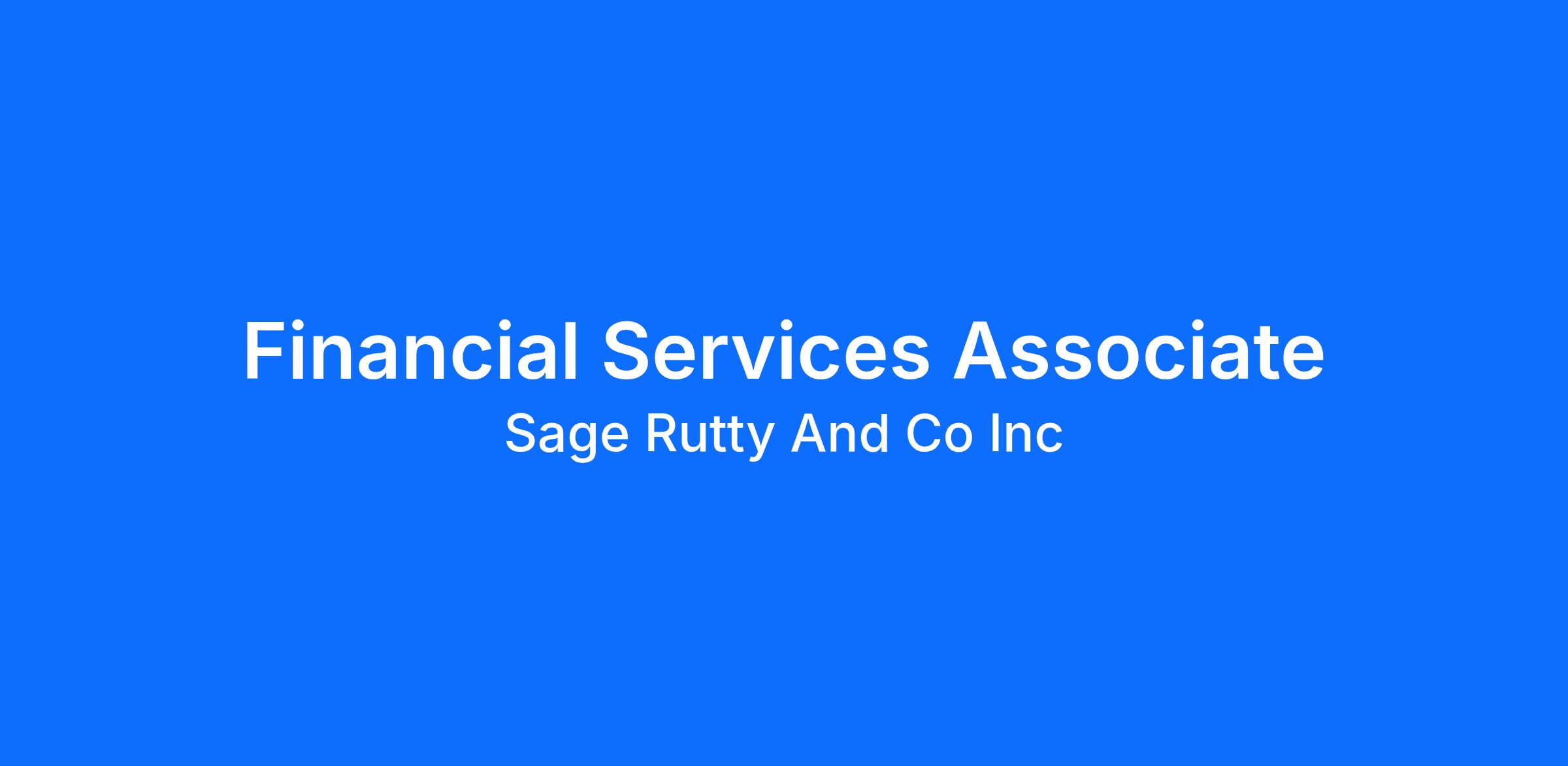 Sage Rutty & Company, Inc., a Comprehensive Financial Services Firm, is growing and searching for a full time associate to assist with supporting that growth. Responsibilities include operational and sales support for an established advisor practice. This person will be responsible for assisting with client service, operational duties and ensuring adherence to compliance and corporate policies. Experience and license is appreciated but not necessary.