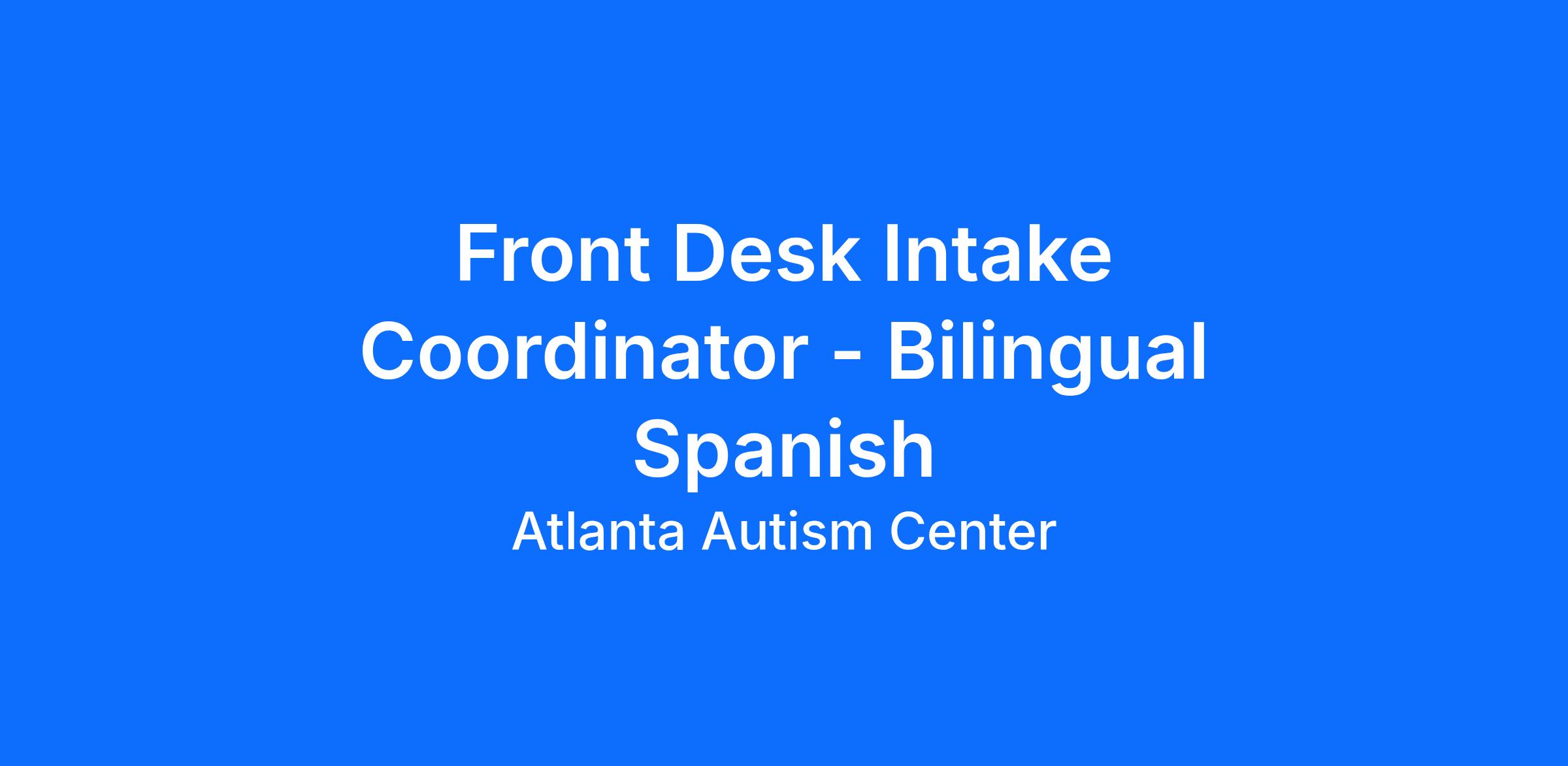 Atlanta Autism Center is hiring a Bilingual Front Desk Intake Coordinator to assist in managing daily administrative operations.