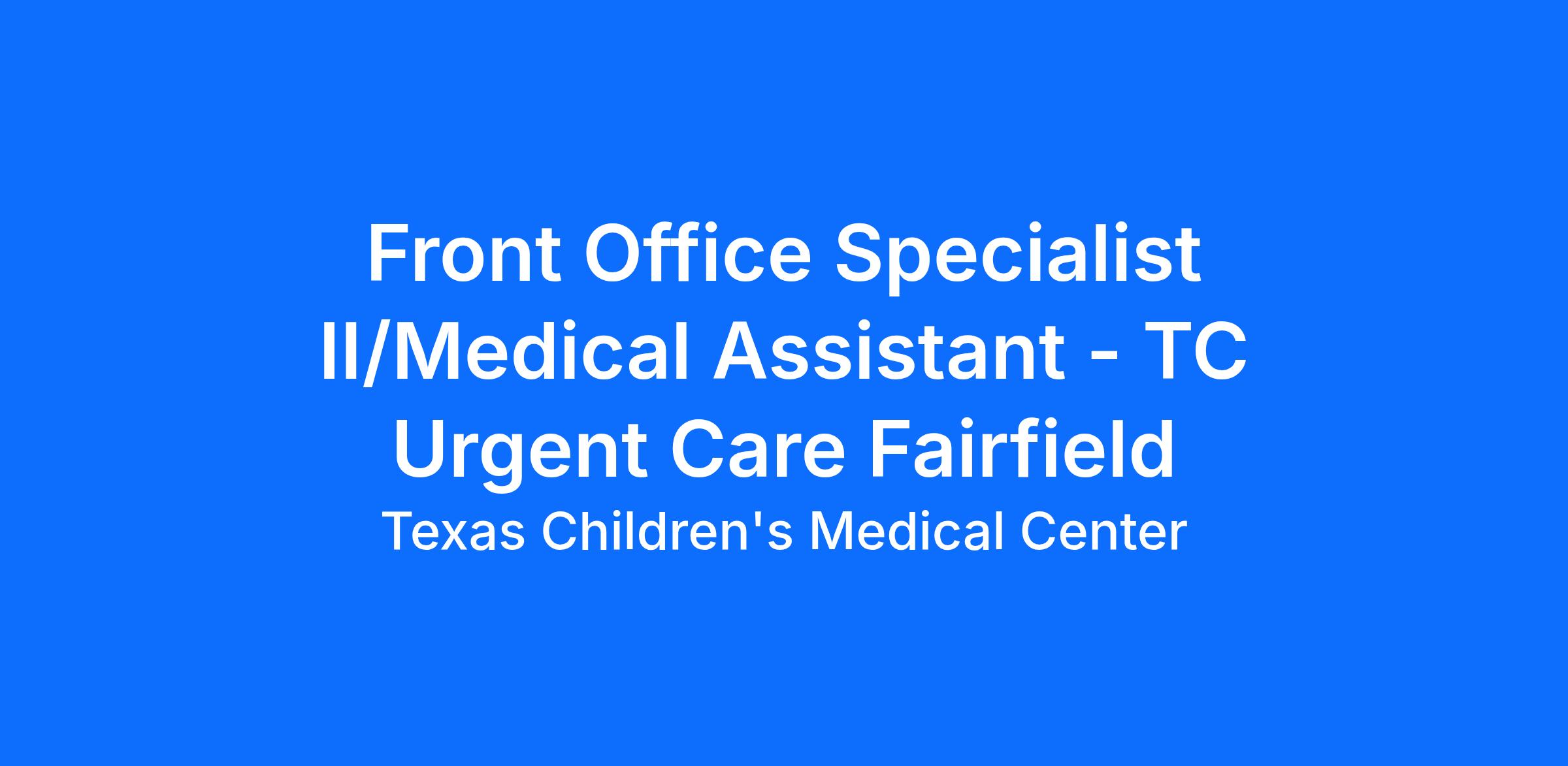 DescriptionWe are searching for a Front Office Specialist II Urgent Care — someone who works well in a fast-paced setting. In this position, you will be responsible for both clinical and non-clinical duties. Gathers information, assesses, and provides direct care to patients. Works collaboratively with other members of the healthcare team to render population appropriate care for low-acuity pediatric patients.