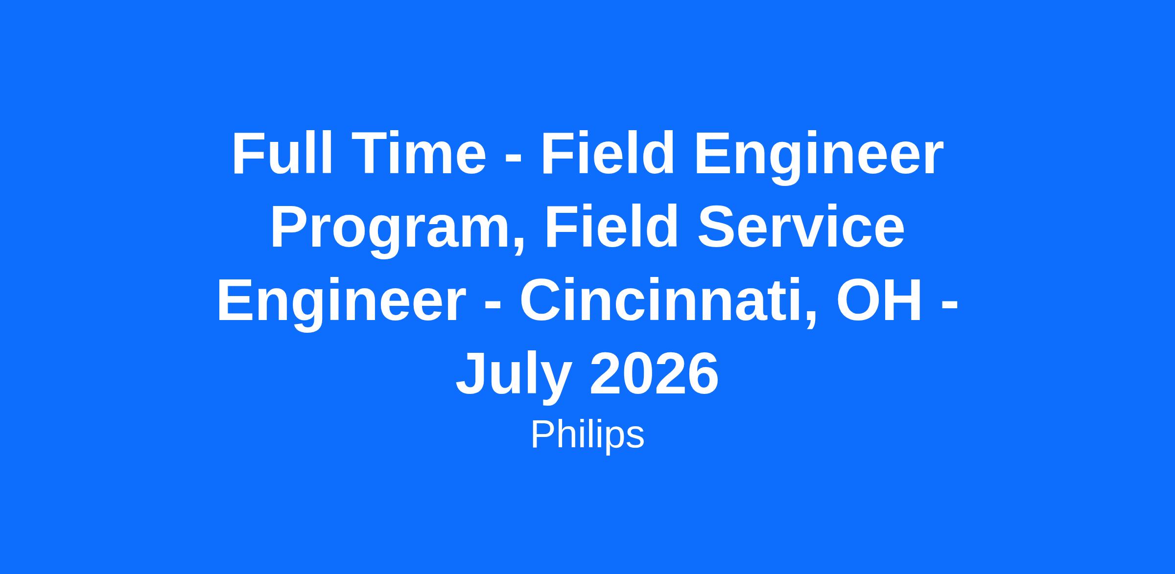 Full Time - Field Service Engineer Program – Cincinnatti, OH – Summer 2026