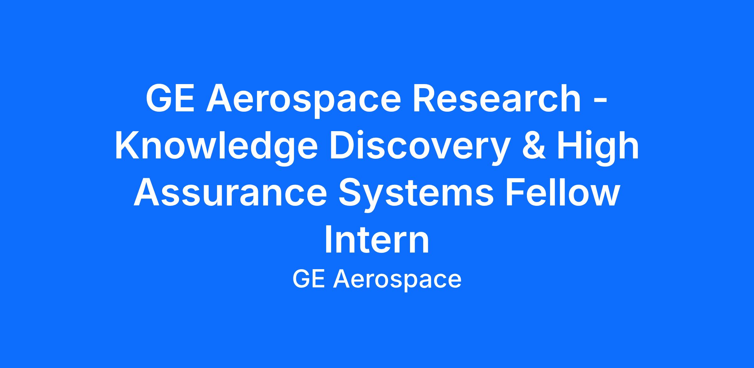 GE Aerospace offers a great work environment, professional development, challenging careers, and competitive compensation. GE Aerospace is an Equal Opportunity Employer. Employment decisions are made without regard to race, color, religion, national or ethnic origin, sex, sexual orientation, gender identity or expression, age, disability, protected veteran status or other characteristics protected by law.