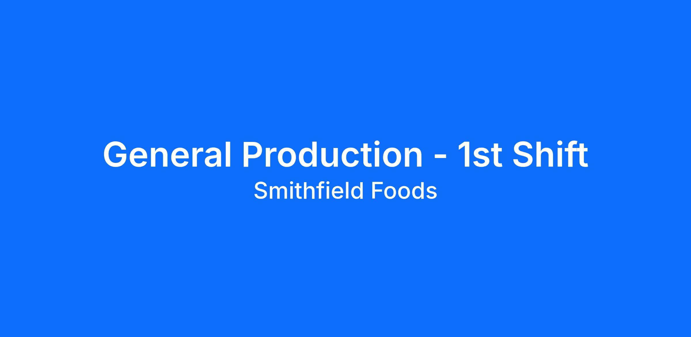 Production employees at Smithfield handle materials and use hand tools, knives, machinery, and equipment to help deliver good food responsibly to America’s dinner table. Production team members at Smithfield perform physically demanding work that requires good hand-eye coordination, attention to detail, strength and stamina. Team members must be available to work scheduled hours, which may include mandatory overtime, depending upon production demands.