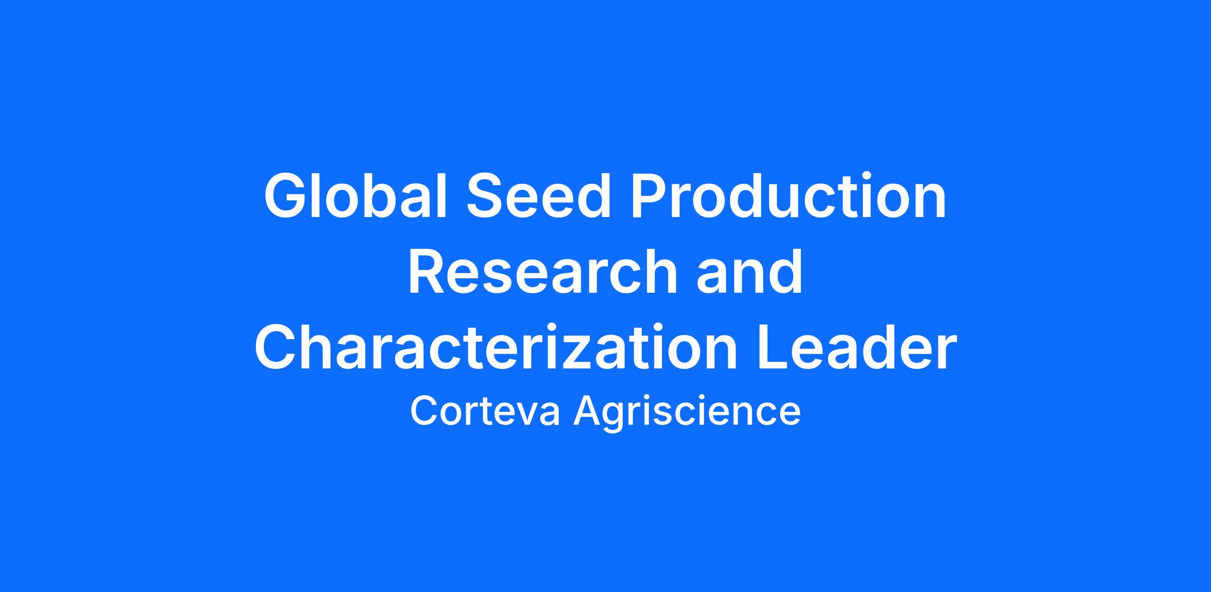 We have an exciting opportunity for Global Seed Production Research and Characterization Leader located at our Global Business Center in Johnston, IA.