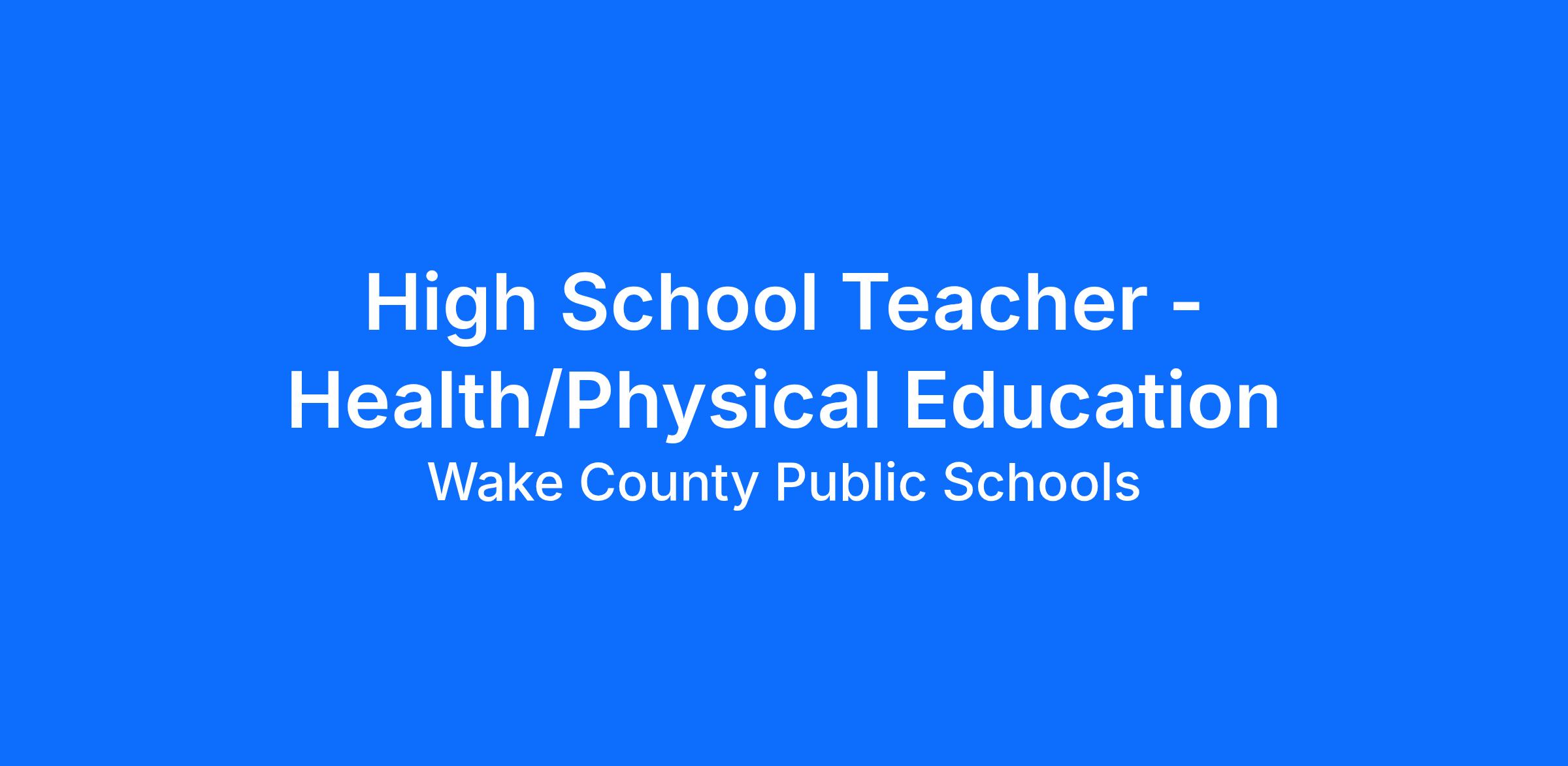 High School Teacher - Health/Physical Education