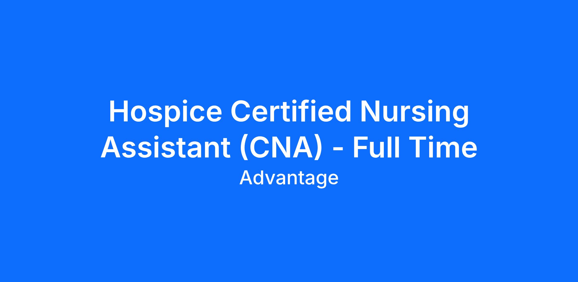 Hospice Certified Nursing Assistant - Full Time