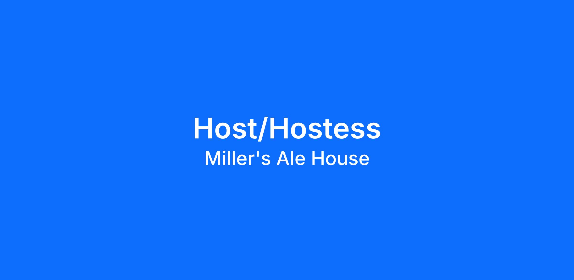 Almost always, you’re the first person guests meet when they come to Miller’s Ale House. You make sure their experience starts perfect by setting the tone from the moment the door opens.