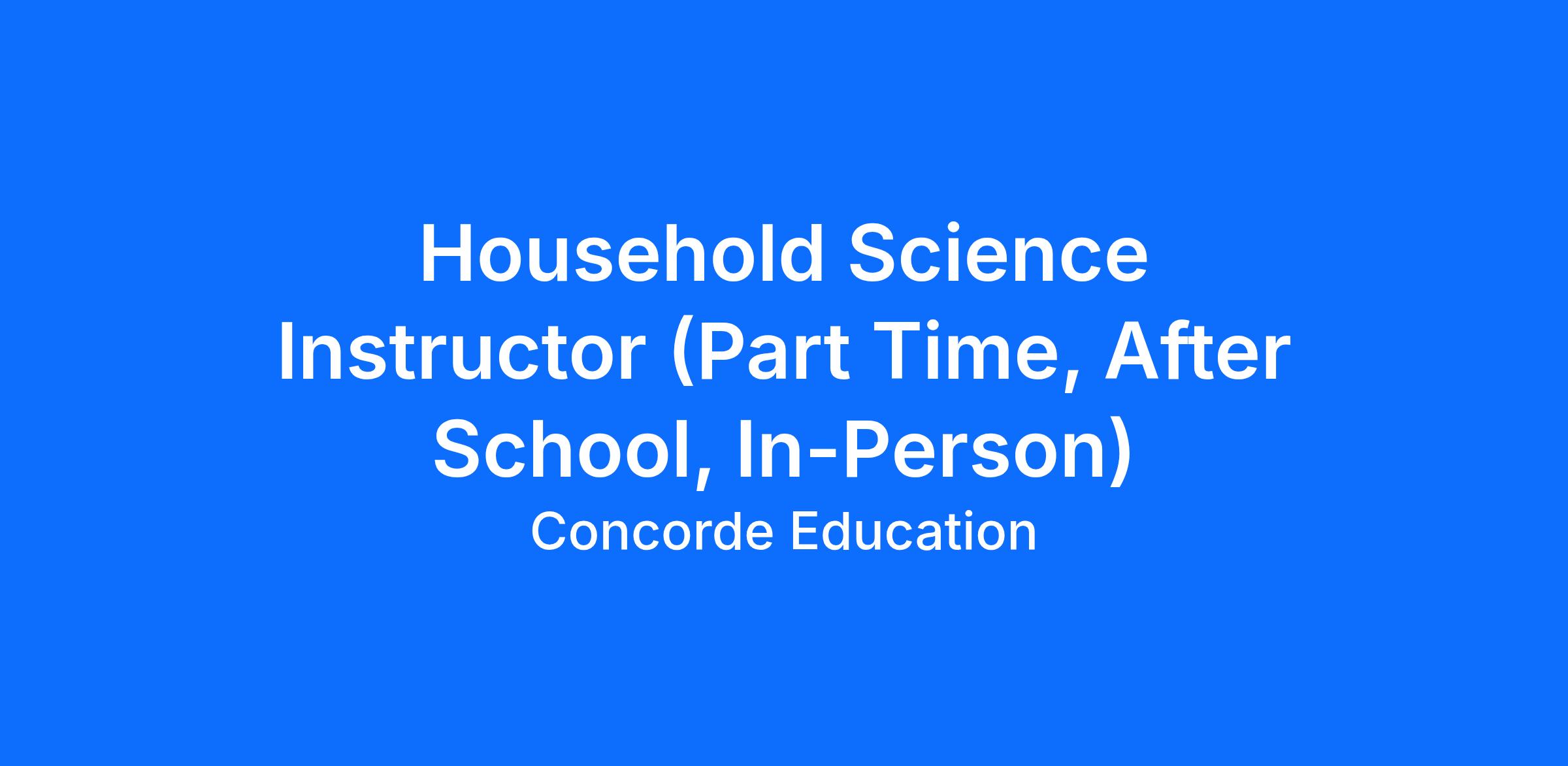 Concorde Education is seeking an engaging, student-centered Household Science Instructor to facilitate a short-format after-school enrichment course for students (grade band varies by assignment). This course introduces students to practical, real-world science concepts through safe, hands-on experiments and demonstrations using common household materials. Students explore how science shows up in everyday life—such as cooking chemistry, cleaning reactions, states of matter, simple machines at home, and basic health and environmental concepts.