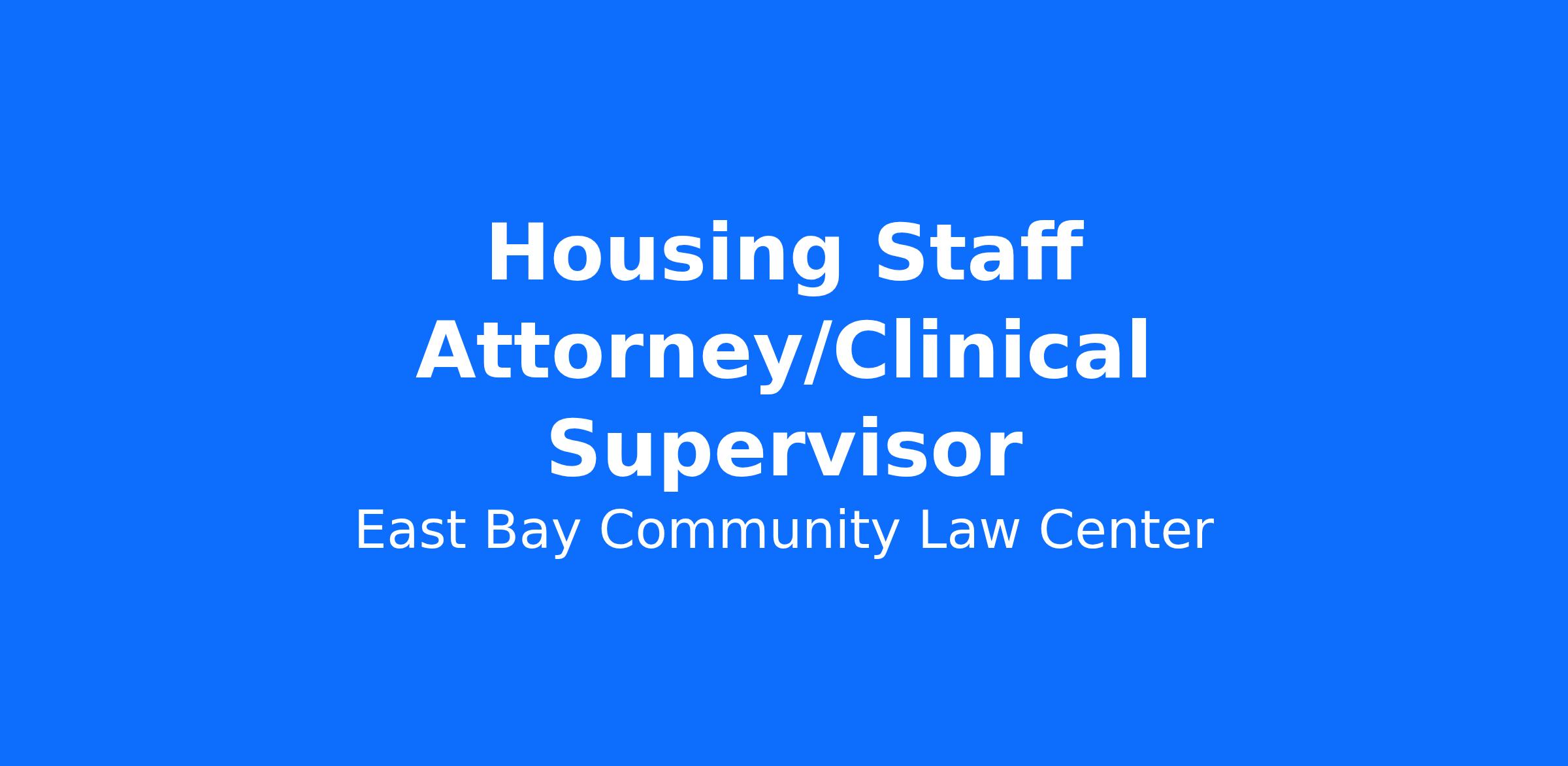 The Housing & Homelessness Advocacy Practice Staff Attorney/Clinical Supervisor represents low-income tenants in eviction lawsuits, advocates for tenants and unhoused community members encountering a broad range of housing-related legal problems and contributes to the creation of more just and humane housing policies for Alameda County tenants, while simultaneously supervising and training law students. This position requires a strong, client-centered advocate with excellent writing and organizational skills who works well in a fast-paced, high-volume litigation setting, has experience providing direct legal services to low-income people, and is committed to mentoring the next generation of legal advocates.
