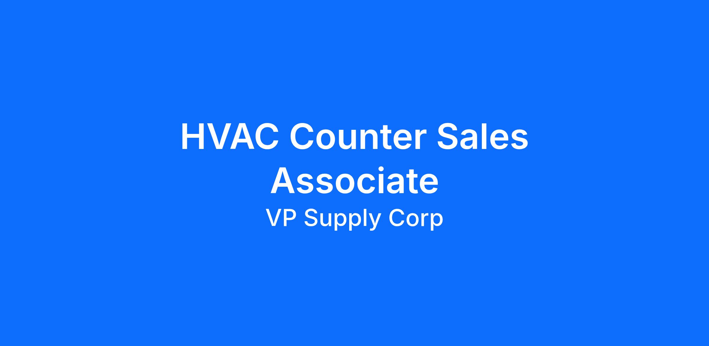 The HVAC Counter Sales Associate plays a key role in supporting our contractor and walk-in customers by providing product knowledge, order support, and exceptional service at the counter. This role is ideal for someone with HVAC experience who enjoys problem-solving, learning new products, and building strong customer relationships.