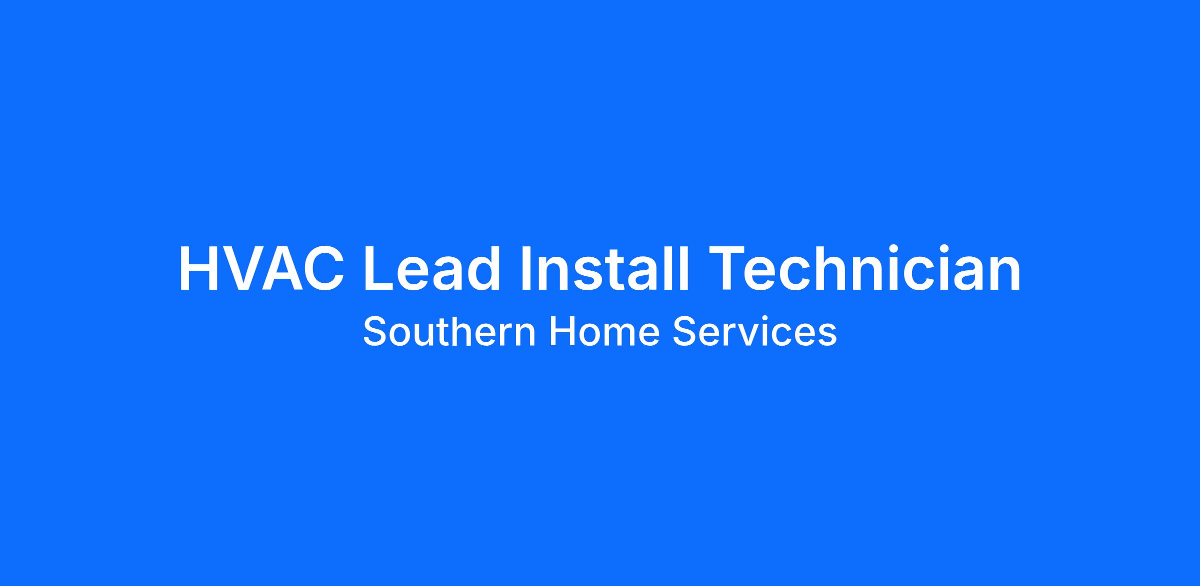 Pro Plumbing, a Southern Home Services Company, is looking for a dynamic-HVAC Lead Install Technician to join a thriving business that believes in work life balance and cares about YOU!