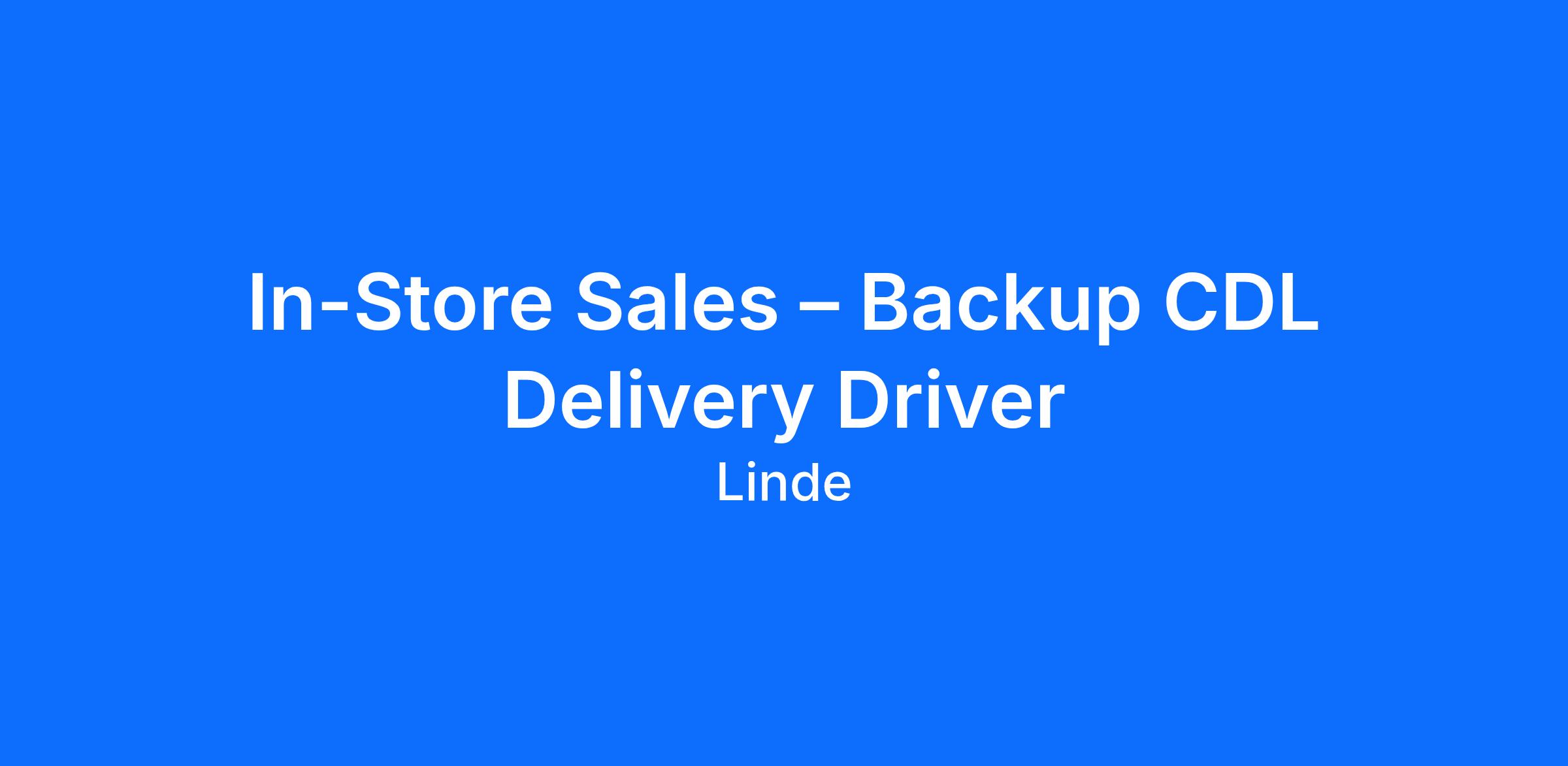 In Store Sales – Backup CDL Delivery Driver
