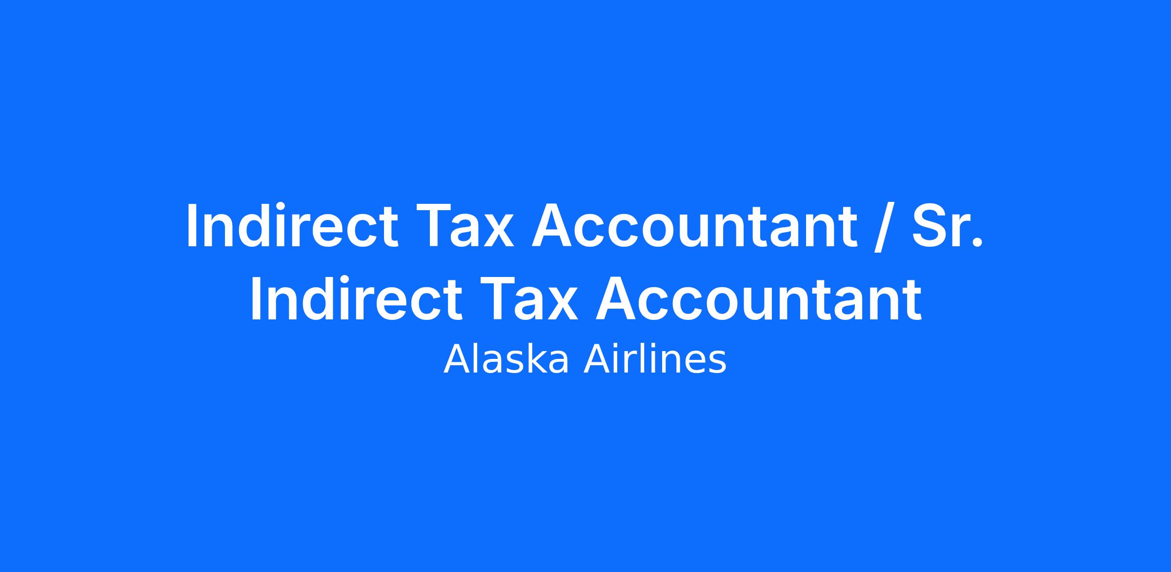 The indirect Senior Tax Accountant is an individual contributor to the Tax team and a subject matter expert who is responsible for projects associated with the maintenance of indirect-tax activities, as well as the preparation and/or review of assigned tax returns and related reports at Alaska Air Group (AAG). This role exercises considerable judgment in projects associated with the preparation and maintenance of indirect tax records.
