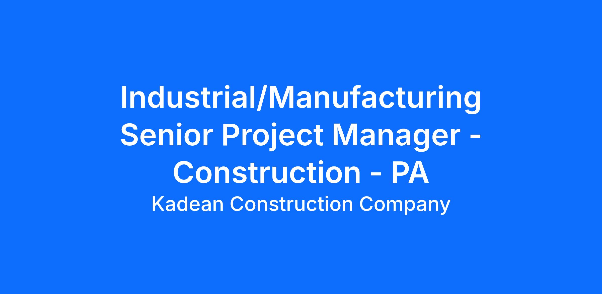 Industrial/Manufacturing Senior Project Manager - Construction - PA
