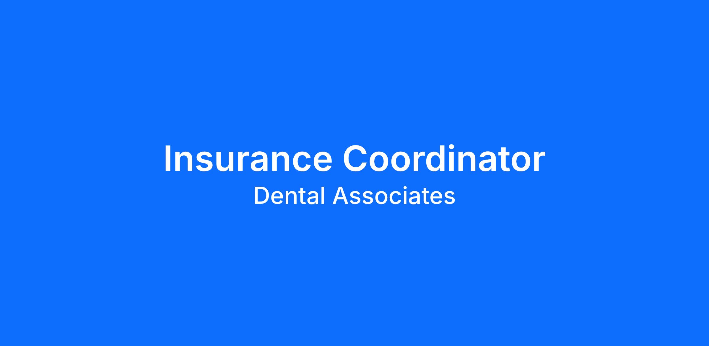 We are seeking a detail-oriented and proactive Insurance Coordinator to join our dental team. This role is essential in ensuring accurate insurance verification, claim submission, and reimbursement for services rendered. The ideal candidate will have experience working with both state-funded programs (e.g., Medicaid) and commercial insurance providers and will be comfortable navigating complex coverage policies and billing procedures.