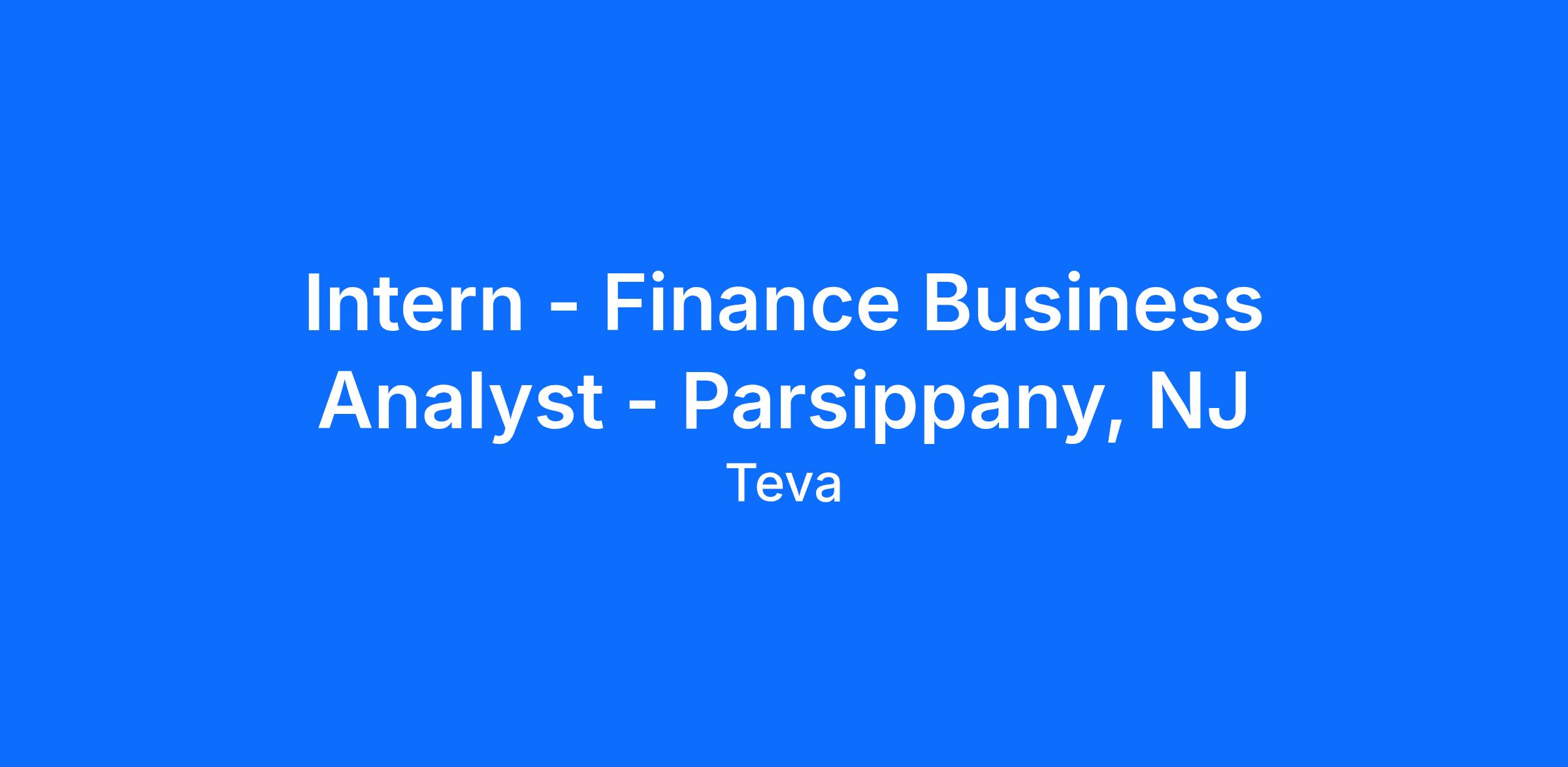 Intern - Finance Business Analyst - Parsippany, NJ