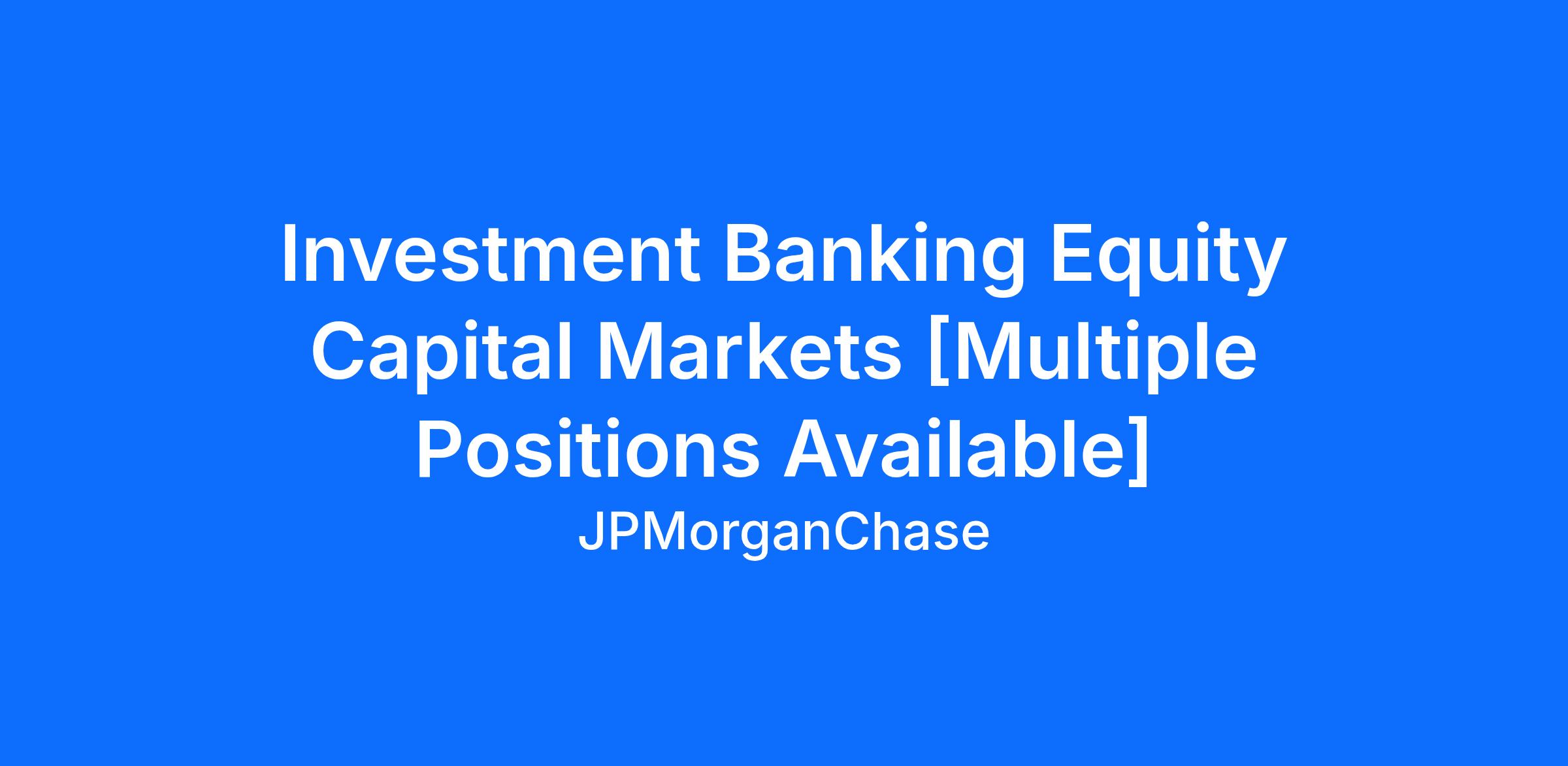 Minimum education and experience required: Bachelor's degree in Economics, Finance, Business Management, Mathematics or related field of study plus 2 years (24 months) of experience in the job offered or as Investment Banking Equity Capital Markets, Investment Banking Analyst, or related occupation.