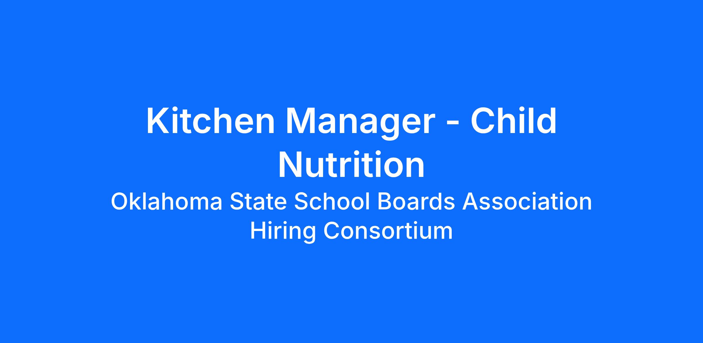 Kitchen Manager - Child Nutrition