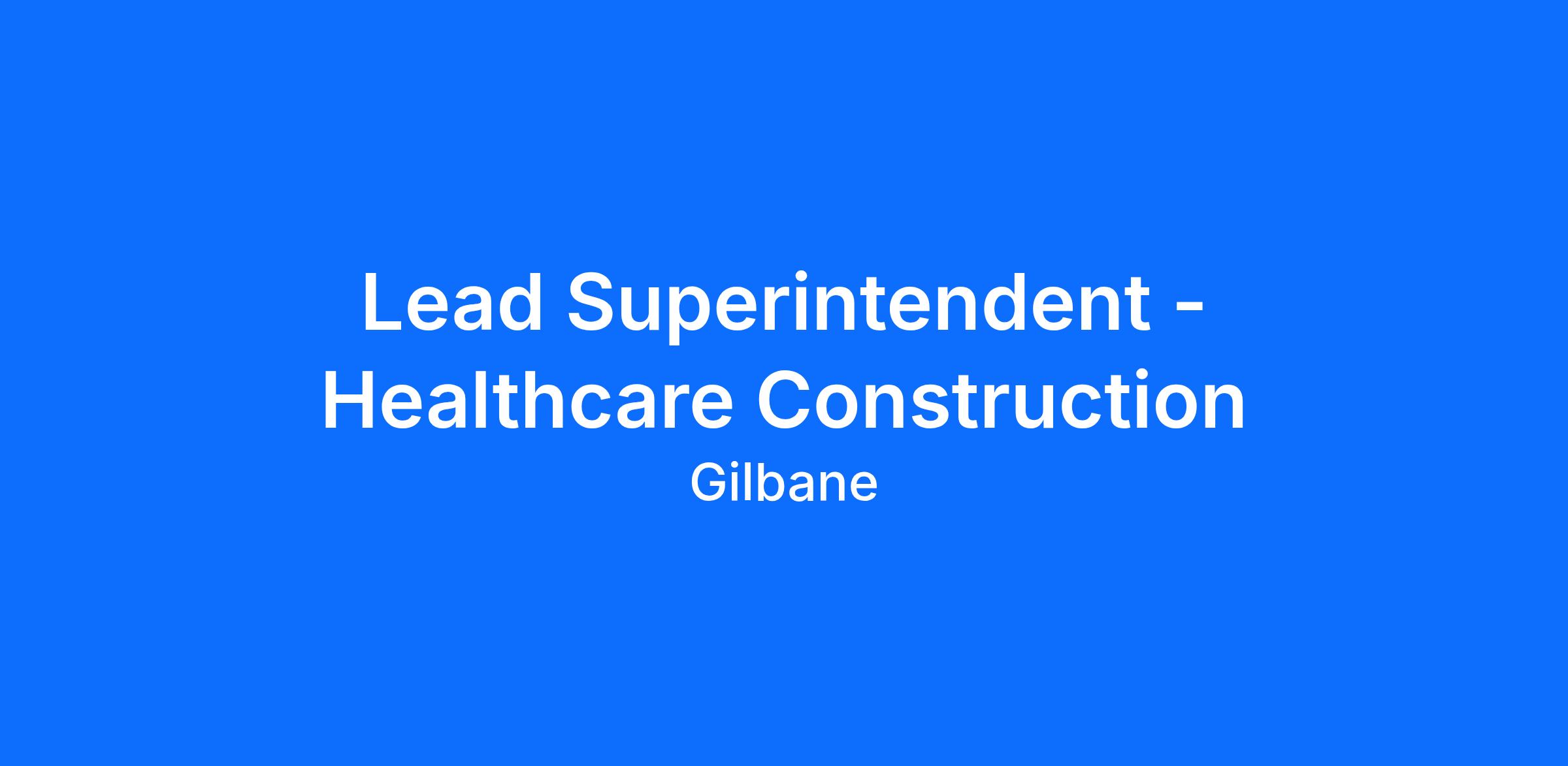 Join the growing Gilbane team in Southeast Florida as we prepare to take on many new and exciting projects - specifically in healthcare construction! Our team is seeking a Lead Superintendent to join our Tampa team. This position will be on the job site every day and will fill a key role on the project team.