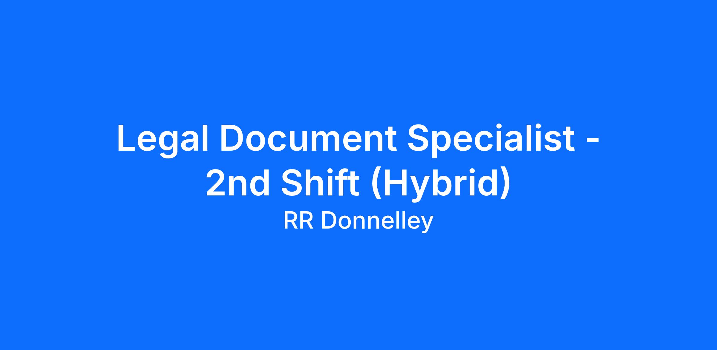 RR Donnelley is adding a Legal Document Specialist to their 2nd Shift team!
