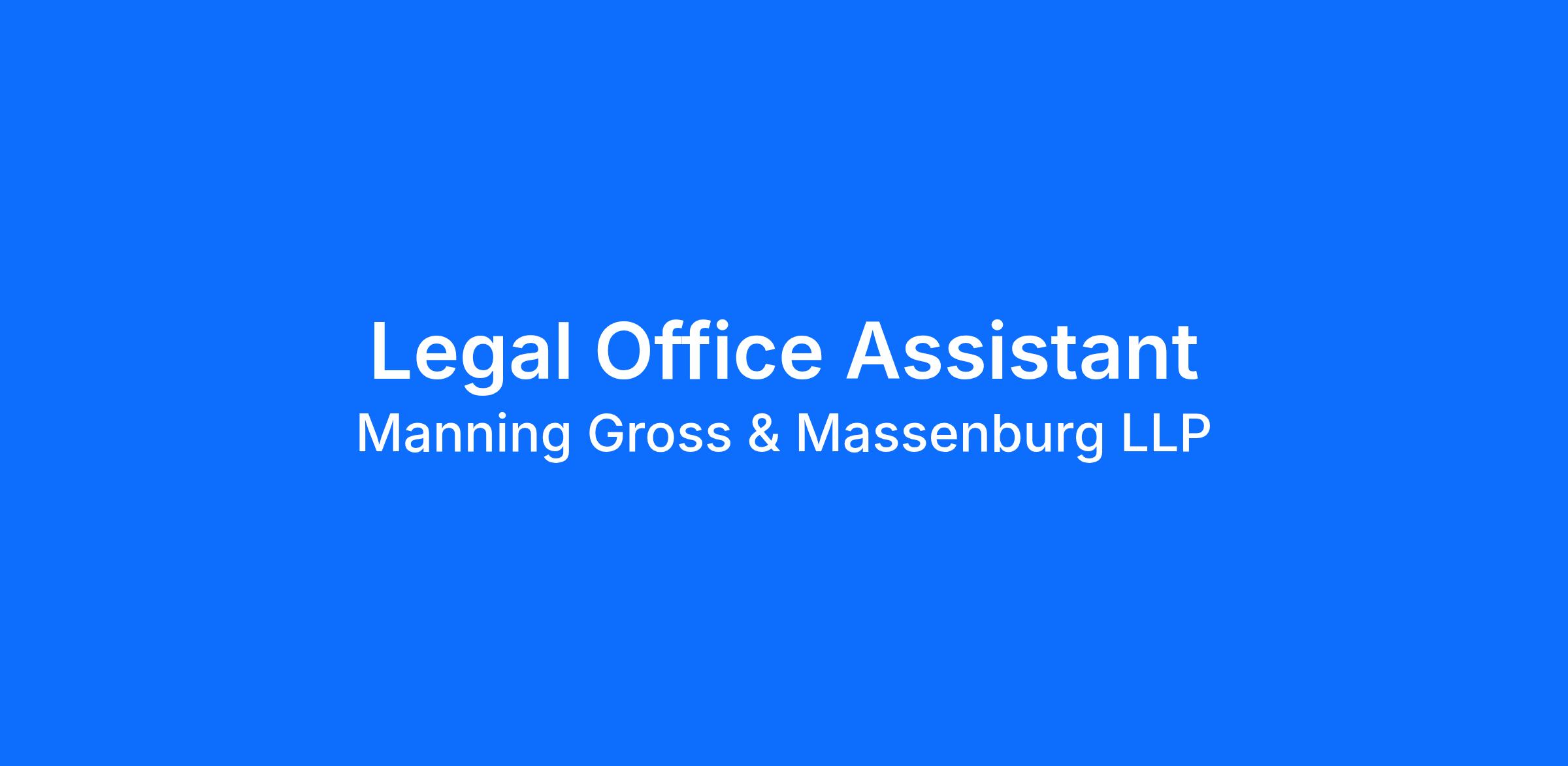 MG+M The Law Firm (MG+M) has an immediate opening for Legal Office Assistant in our Chicago, IL office.