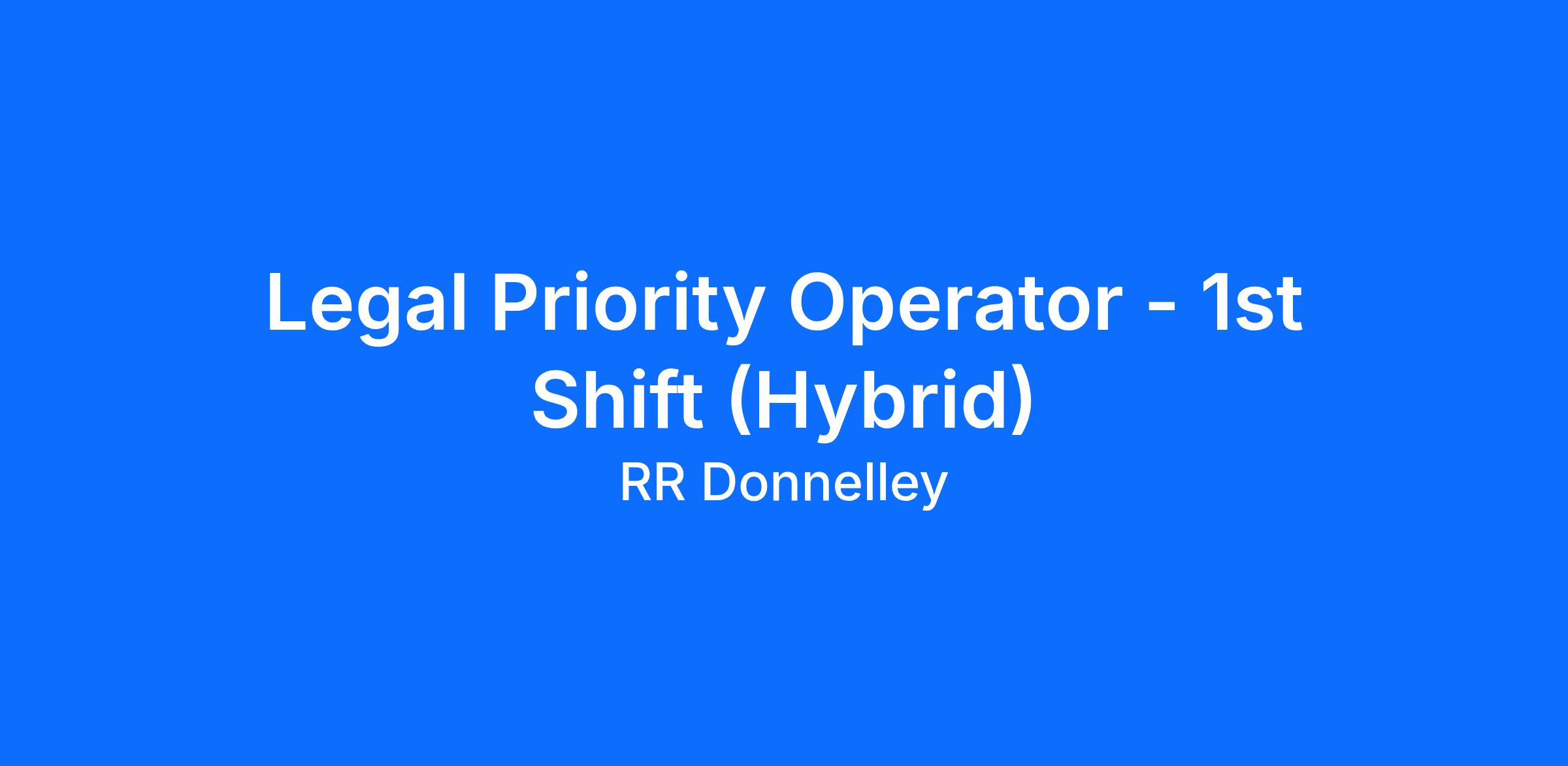 RR Donnelley is adding Legal Priority Operators to their team! As Legal Priority Operator, you will be responsible for supporting work across all shifts to support time sensitive project requests. The position requires high attention to detail and must maintain a high level of customer satisfaction. Knowledge in legal word/document processing using a variety of legal software, tools, Microsoft Office suite is an added advantage.