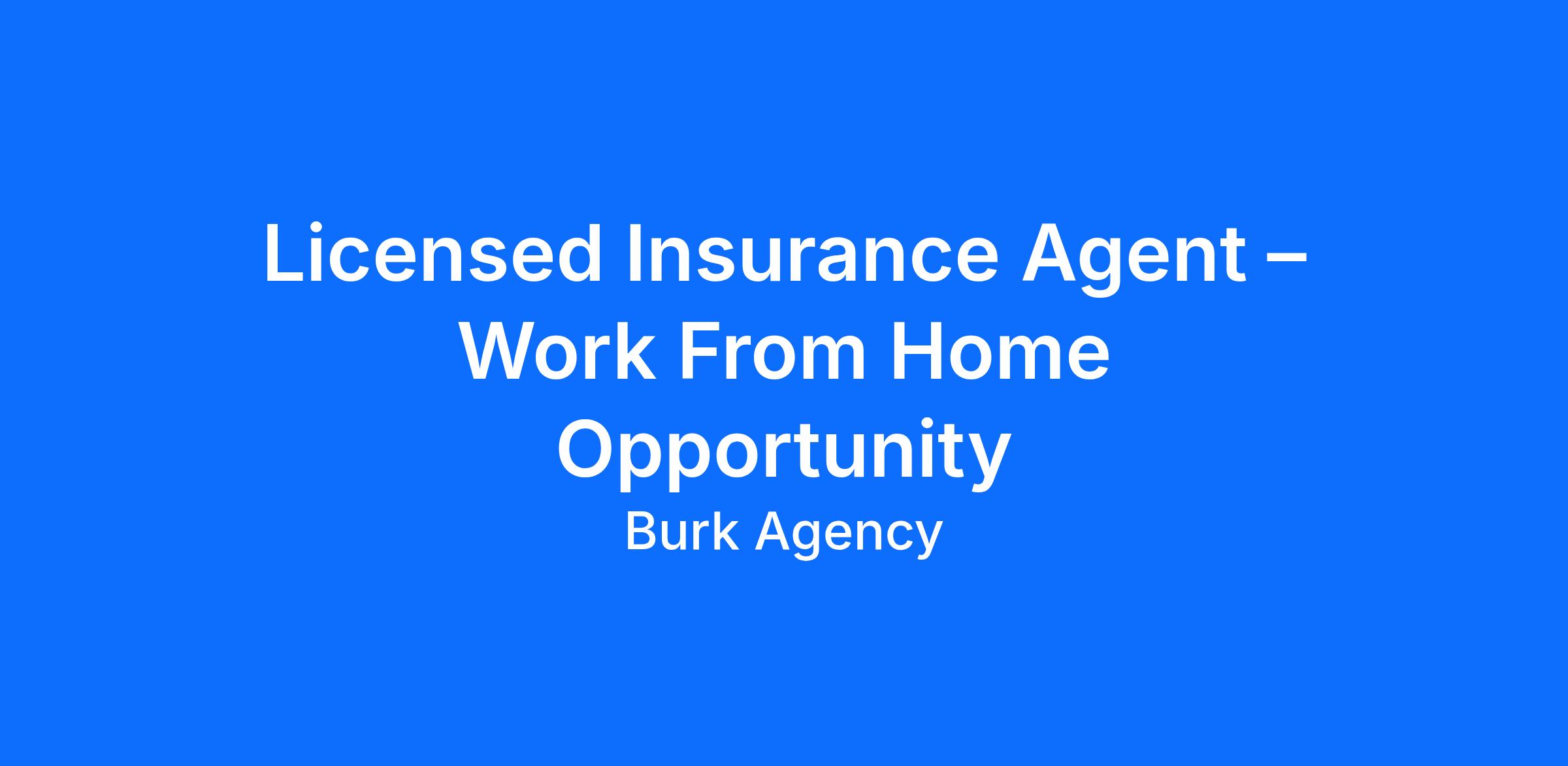 Licensed Insurance Agent – Work From Home Opportunity