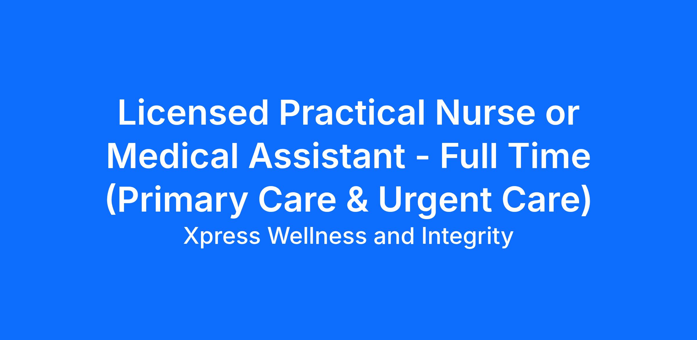The Medical Assistant or Licensed Practical Nurse assists the provider in the examination and treatment of patients, following established standards and practices, as directed by the clinic provider. Employees will ensure patient confidentiality at all times. Employees may be tasked to assist in other areas of the clinic as needed, such as Front Office responsibilities. Please note this job description is not designed to cover or contain a comprehensive listing of activities, duties, or responsibilities that are required of the employee for this job. Duties, responsibilities, and activities may change at any time with or without notice.