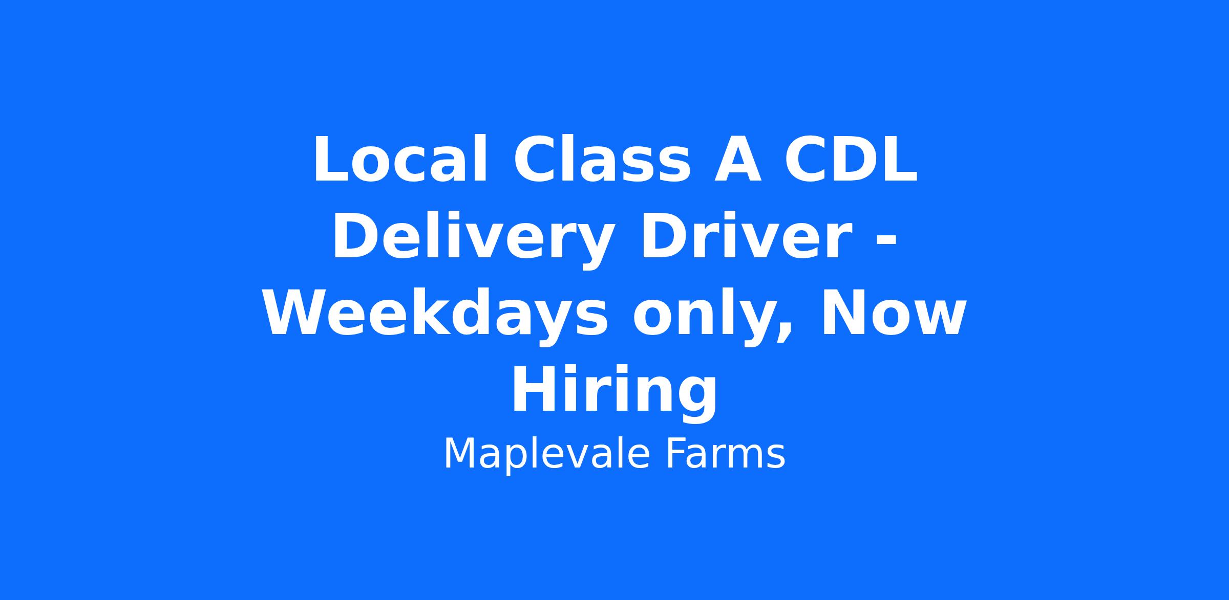Maplevale Farms is looking for a dedicated Class A CDL local driver to join our family. Delivery drivers are home every night and work Monday thru Friday. Maplevale Farms is a family owned business who continues to grow but will always remain family centered. Our goal is to better our communities through customer service.