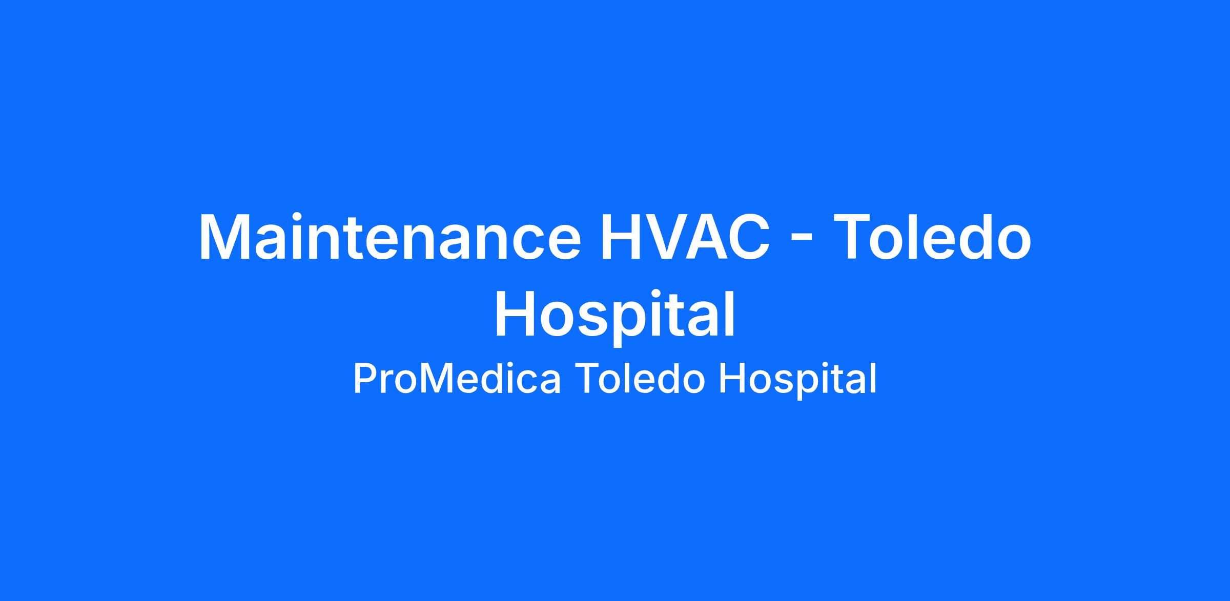 In the HVAC, General Maintenance role, you will repair and maintain all HVAC systems at your assigned ProMedica facility.