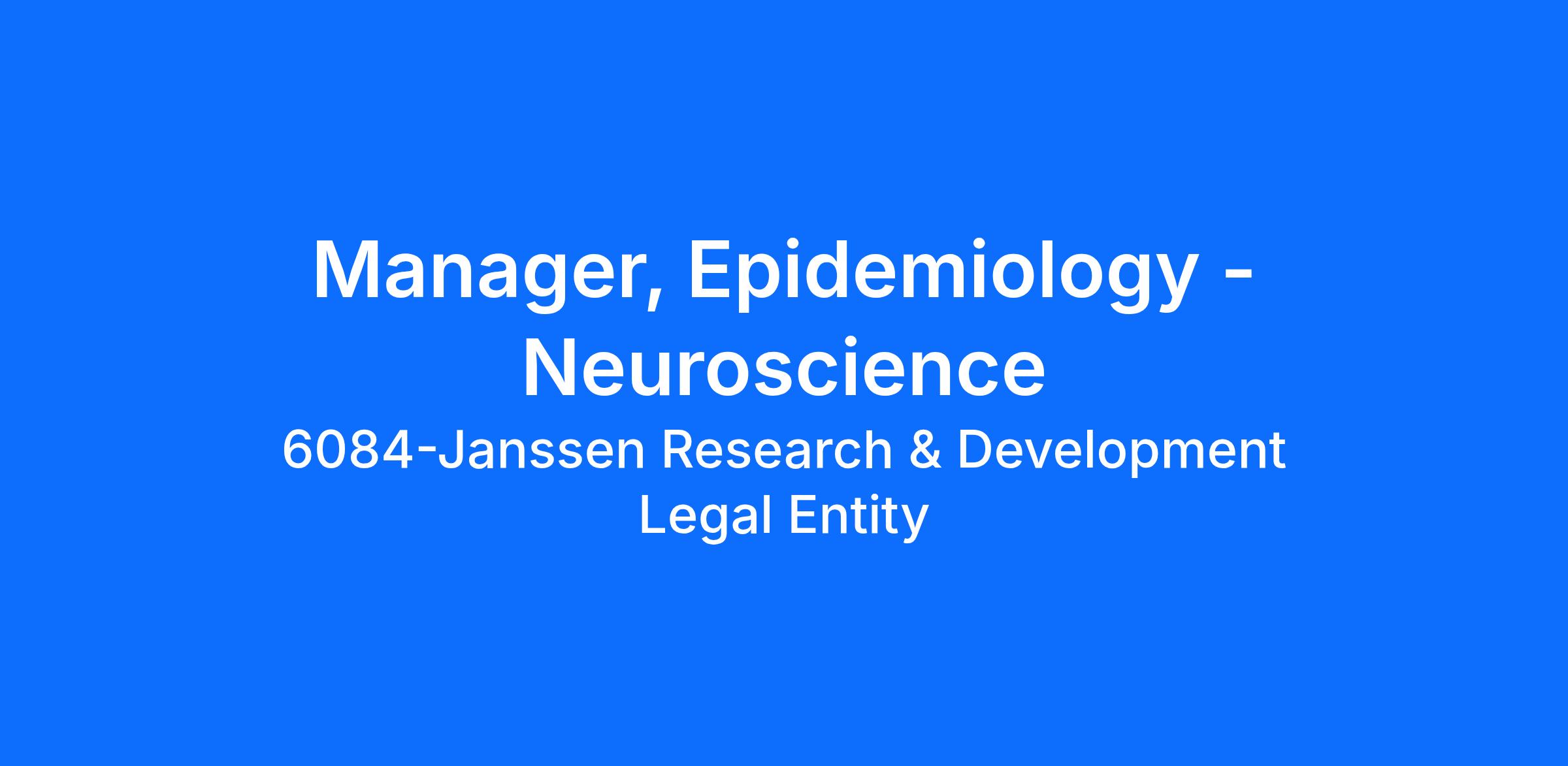 Johnson & Johnson Innovative Medicine is seeking a Manager, Epidemiology - Neuroscience to join our Global Epidemiology team. The preferred location for this position is either Horsham PA, Titusville NJ, or Raritan NJ. Consideration may also be given for Spring House PA, or Cambridge MA. (No fully remote option.)