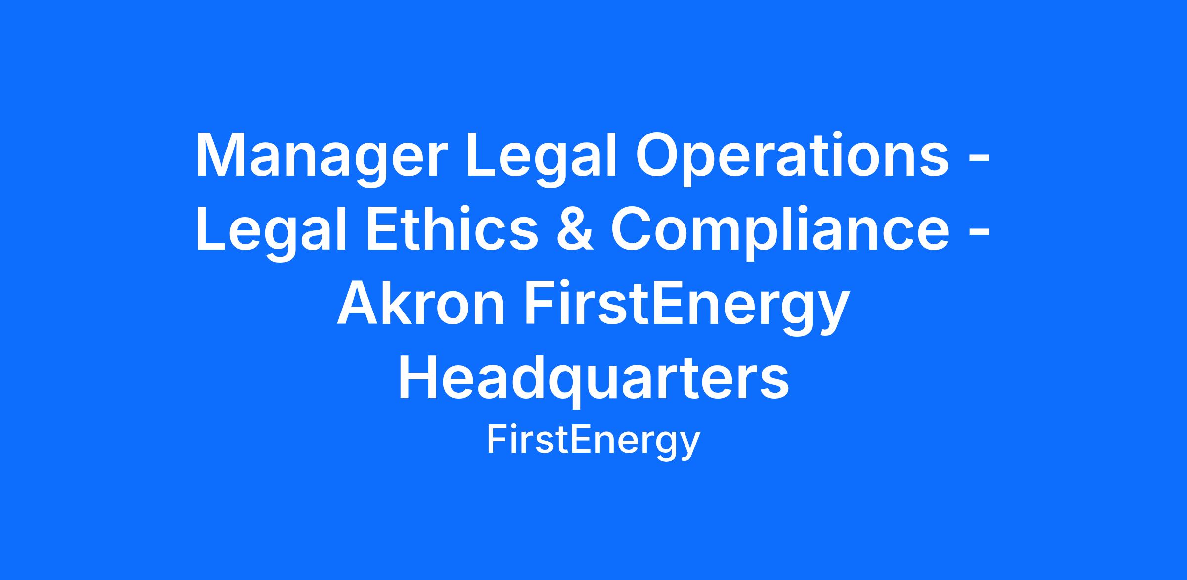 The Manager of Legal Operations is a strategic leader responsible for overseeing and optimizing the business and administrative functions of FirstEnergy’s Legal Department (Department). This role partners with the Chief Legal Officer (CLO) and Associate General Counsels (AGCs) to drive operational efficiency, devise and implement best practices, and support the team in delivering high-quality legal services to the organization. A core aspect of this role is fostering a culture of innovation, and leveraging advanced technology—including artificial intelligence (AI)—to transform legal processes and deliver forward-thinking solutions.